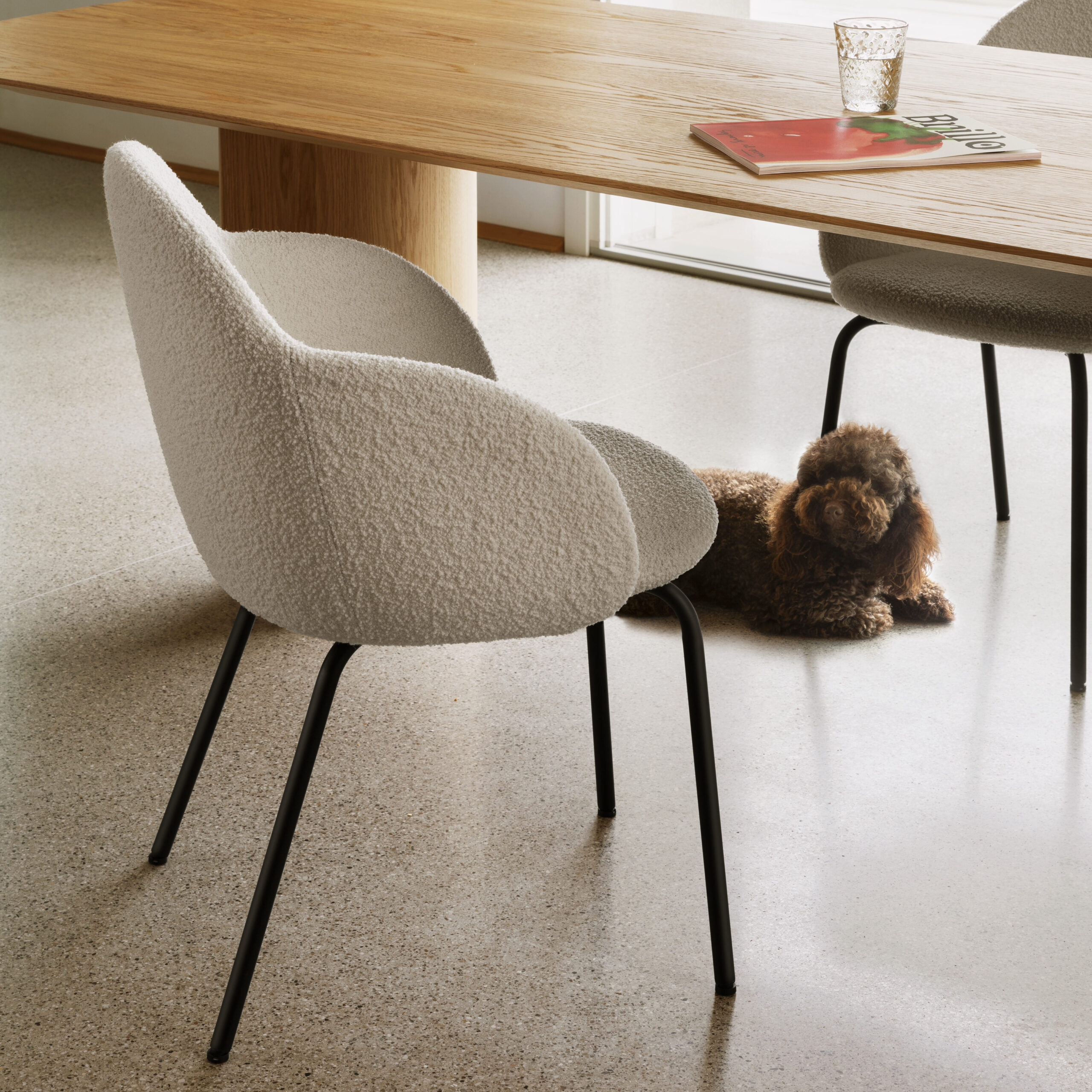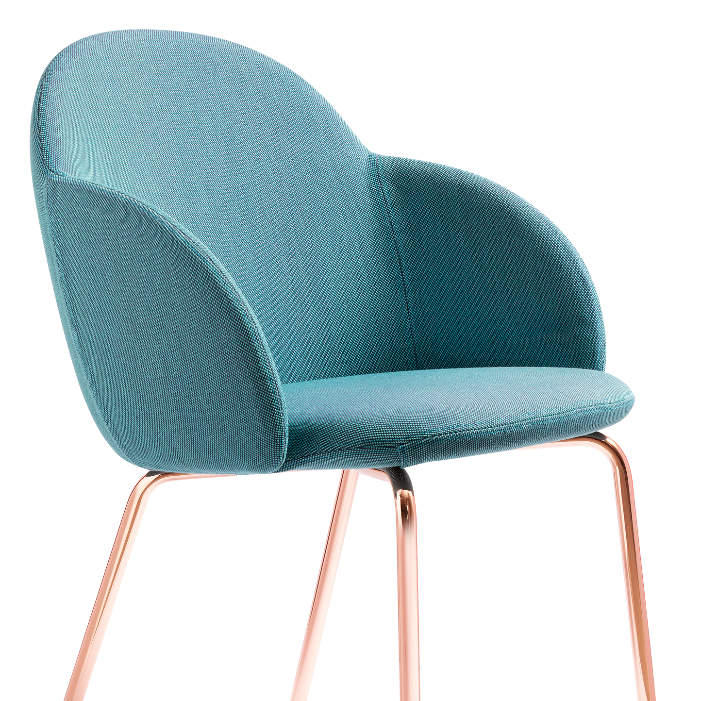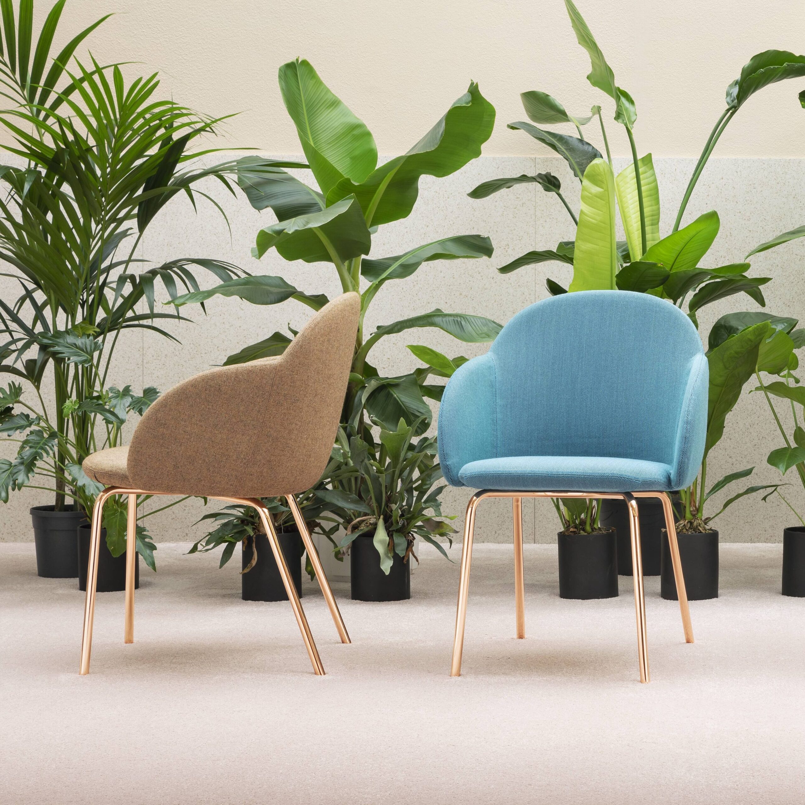 Iola Basic Metal Armchair hints at pop culture though comes across as a modern classic. The Iola is gently cushioned with foam and finished in the upholstery of your choice. Choose from metal, wood, and office styles with the Iola chair base. Also available with or without armrests.