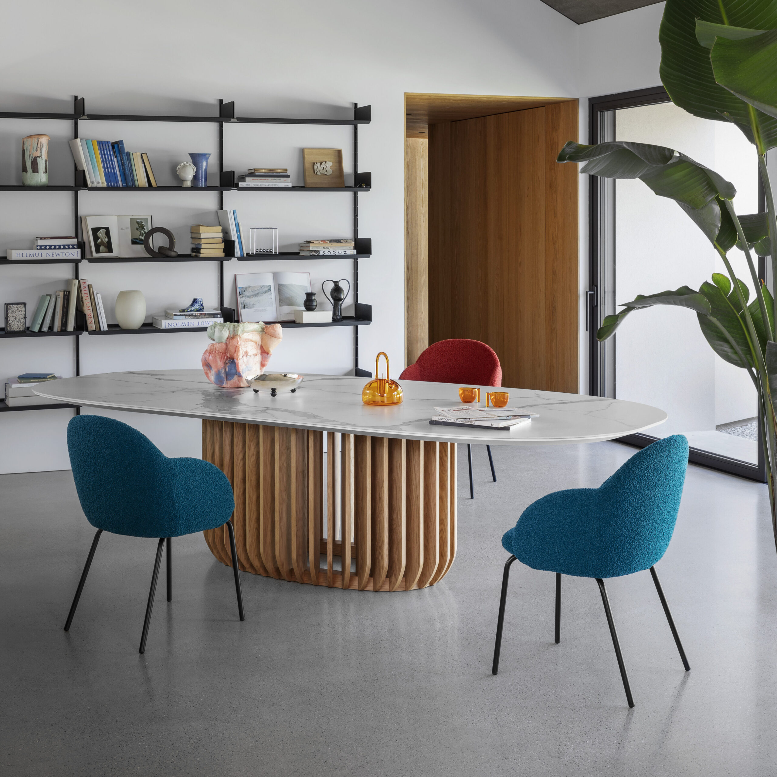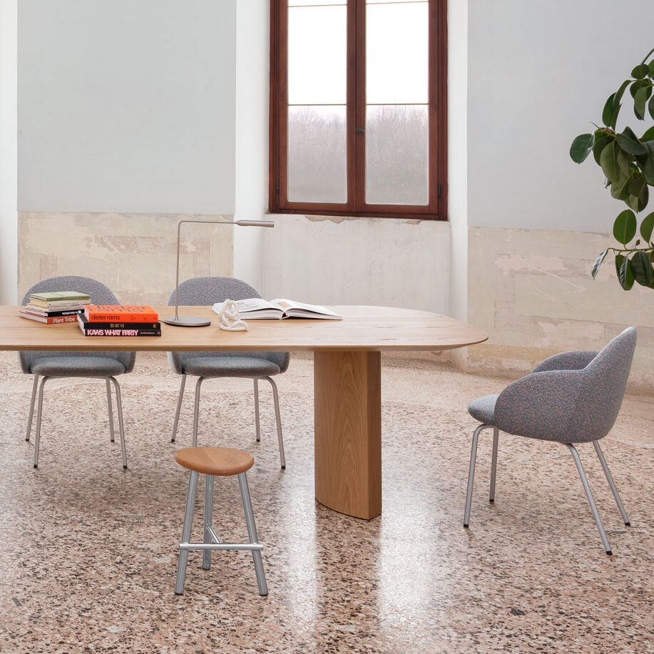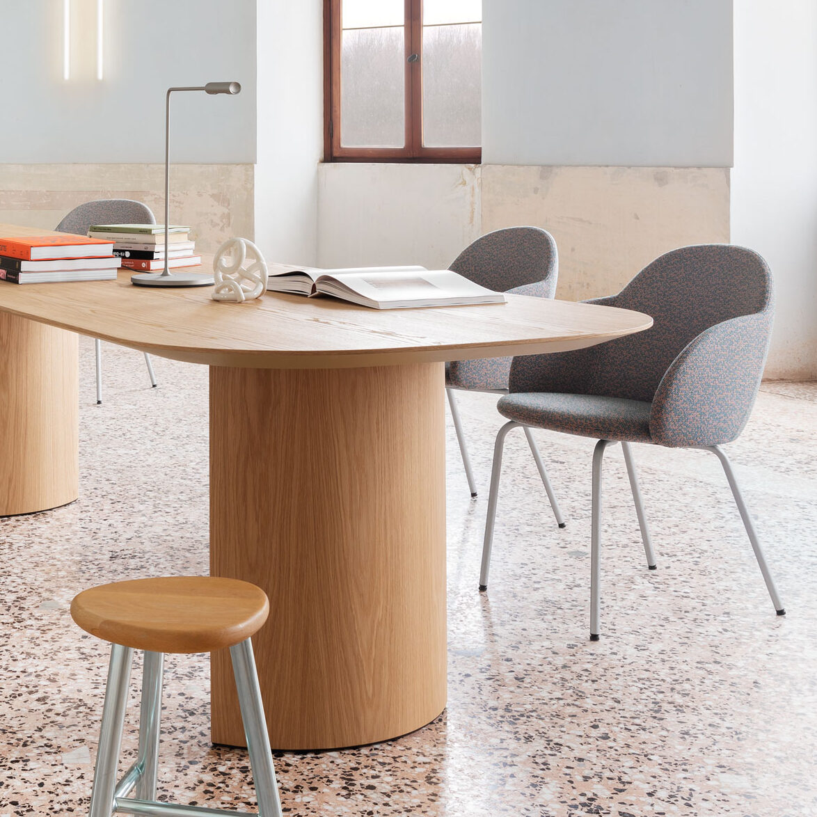 Iola Basic Metal Armchair hints at pop culture though comes across as a modern classic. The Iola is gently cushioned with foam and finished in the upholstery of your choice. Choose from metal, wood, and office styles with the Iola chair base. Also available with or without armrests.