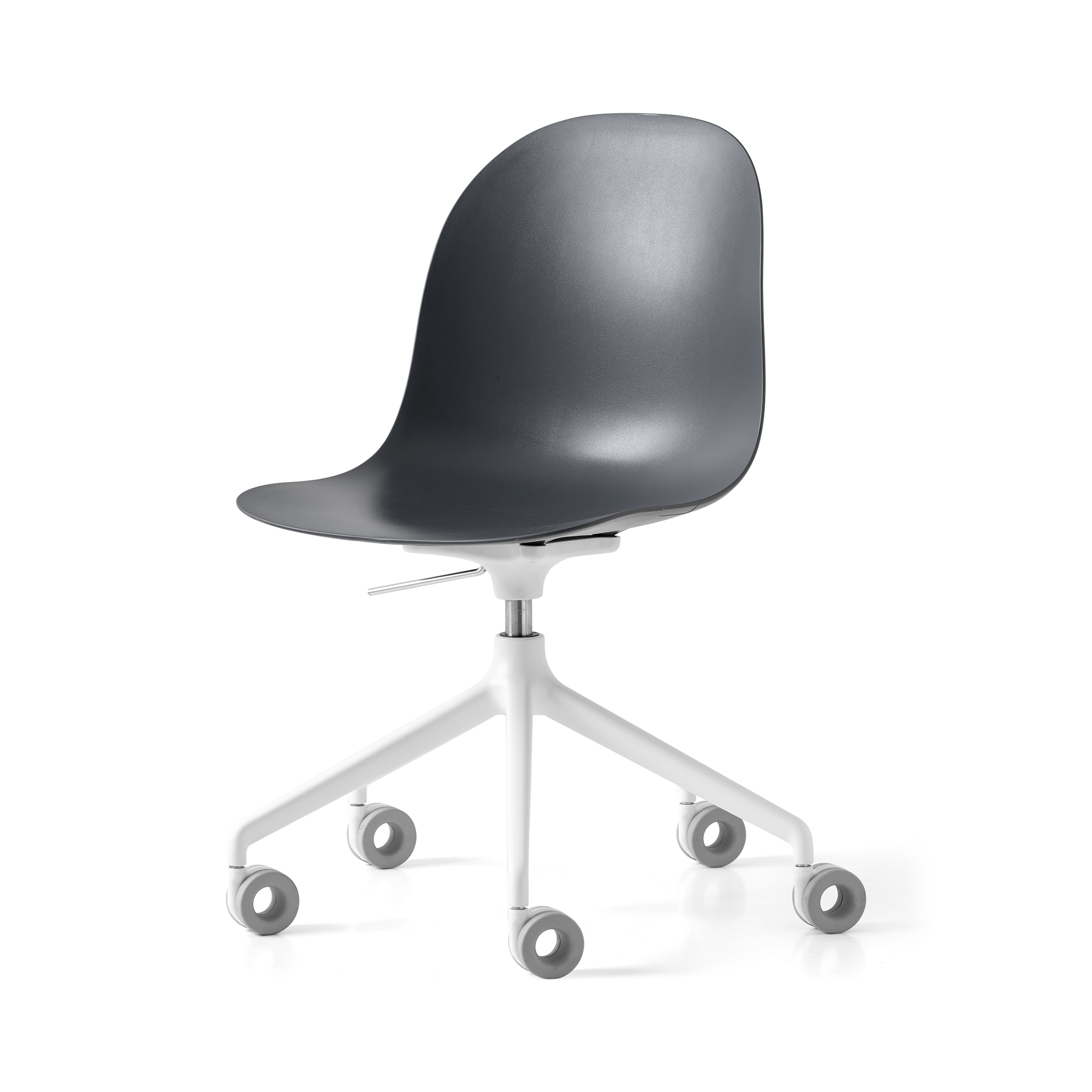 ACADEMY home-office chair features a metal frame and a seat shell that is both comfortable and elegant. This is a multi-functional model, perfect for the office, with a 360-degree swiveling function, gas-lift mechanism and a base with pre-fitted soft rubber casters. Available in your choice of Polypropylene, transparent Poly-carbon, fabric or leather upholstery.