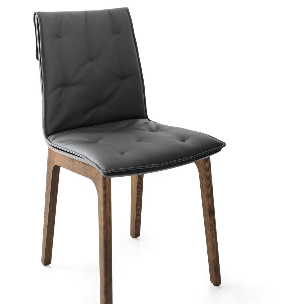 Alfa combines elegant form with solid materials. The solid wood structure, offered in selected finishes, highlights the natural uniqueness of the grain, bringing warmth and authenticity. Its slender silhouette combines visual lightness with stability, while the upholstered cushion, meticulously incorporated into the profile, defines the ergonomics of both seat and backrest. Not just a chair, but a design piece that fuses softness and discipline in a sophisticated balance.