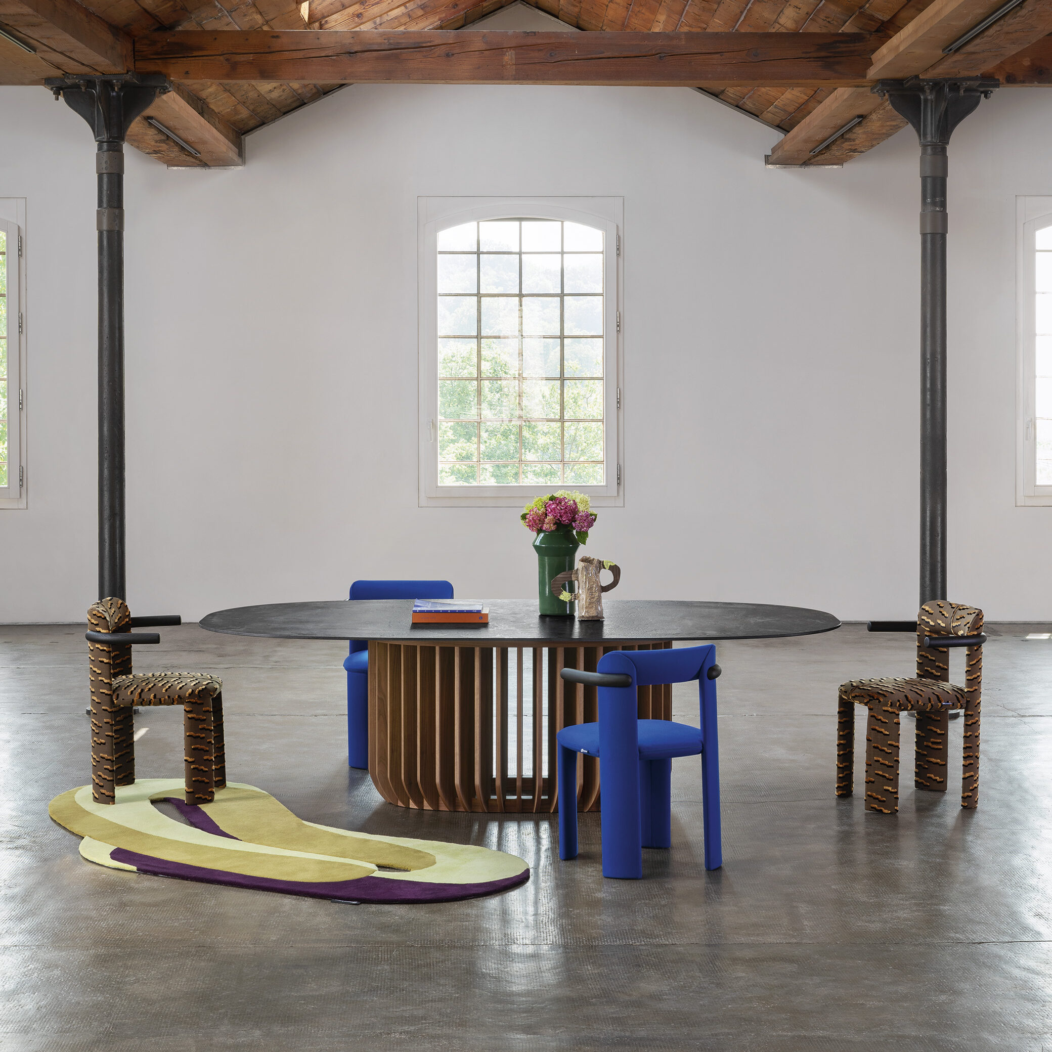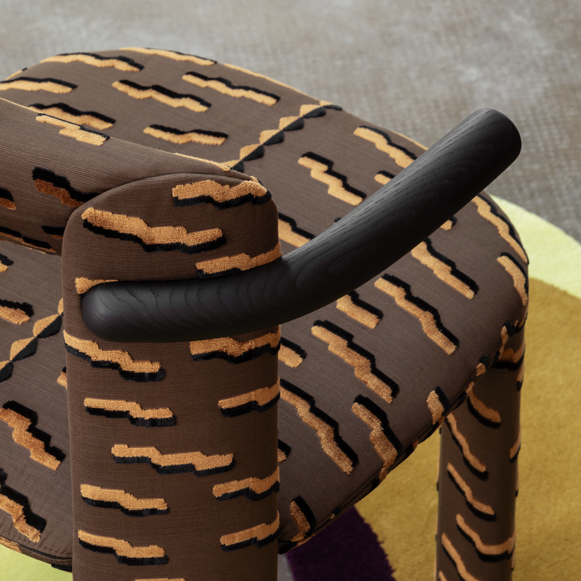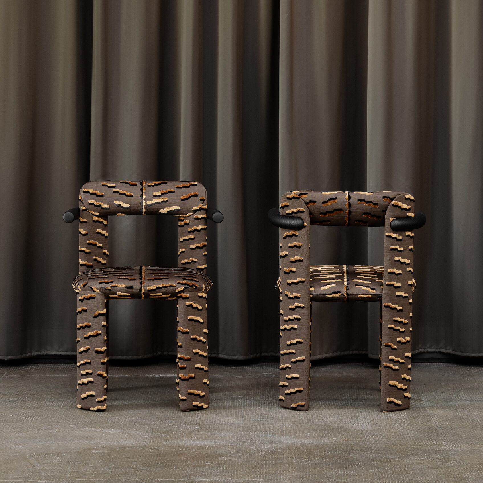 Amia is our new chair in fabric. A piquant personality shines through the upholstery, expressed in swift, defined lines, softened by rounded joints. Amia is both practical and elegant, with a simple attitude and a carefully thought-out design: the legs mirror each other cross-wise, forming a subtly squared backrest as a distinctive feature.