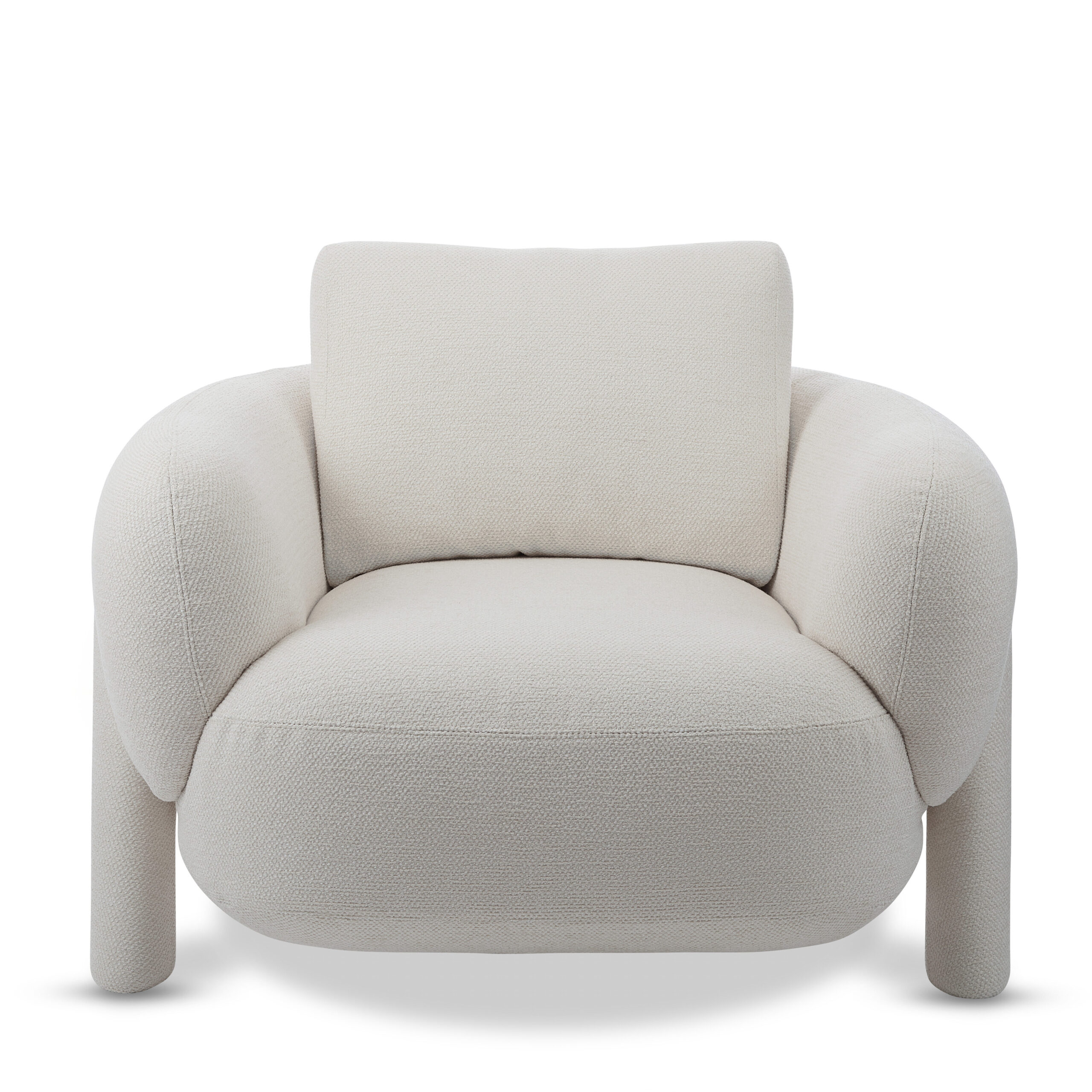 The soft and round shapes of the Anam armchair appear to be sculpted in air, resting on columns as if belonging to a parallel world, reigned by balance.