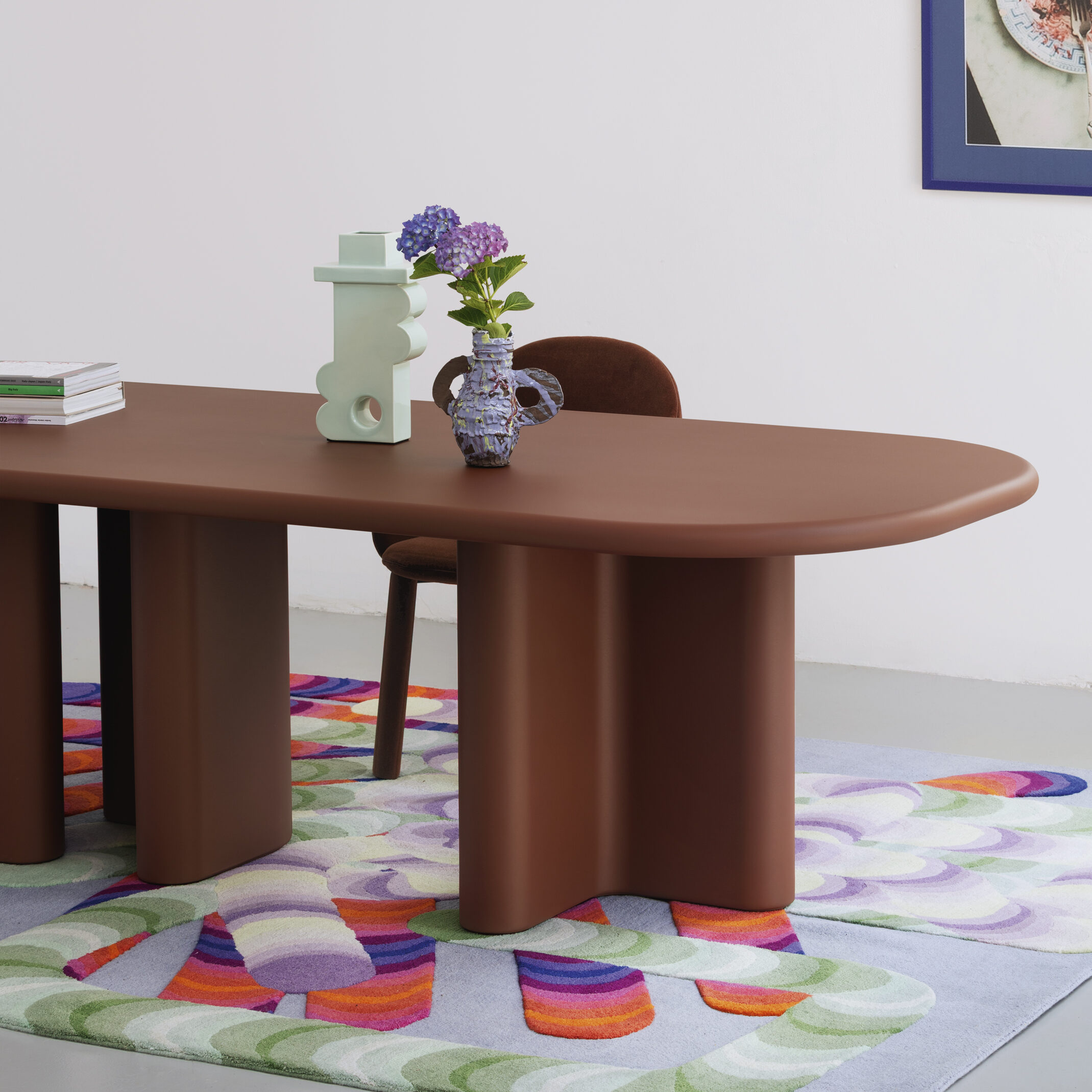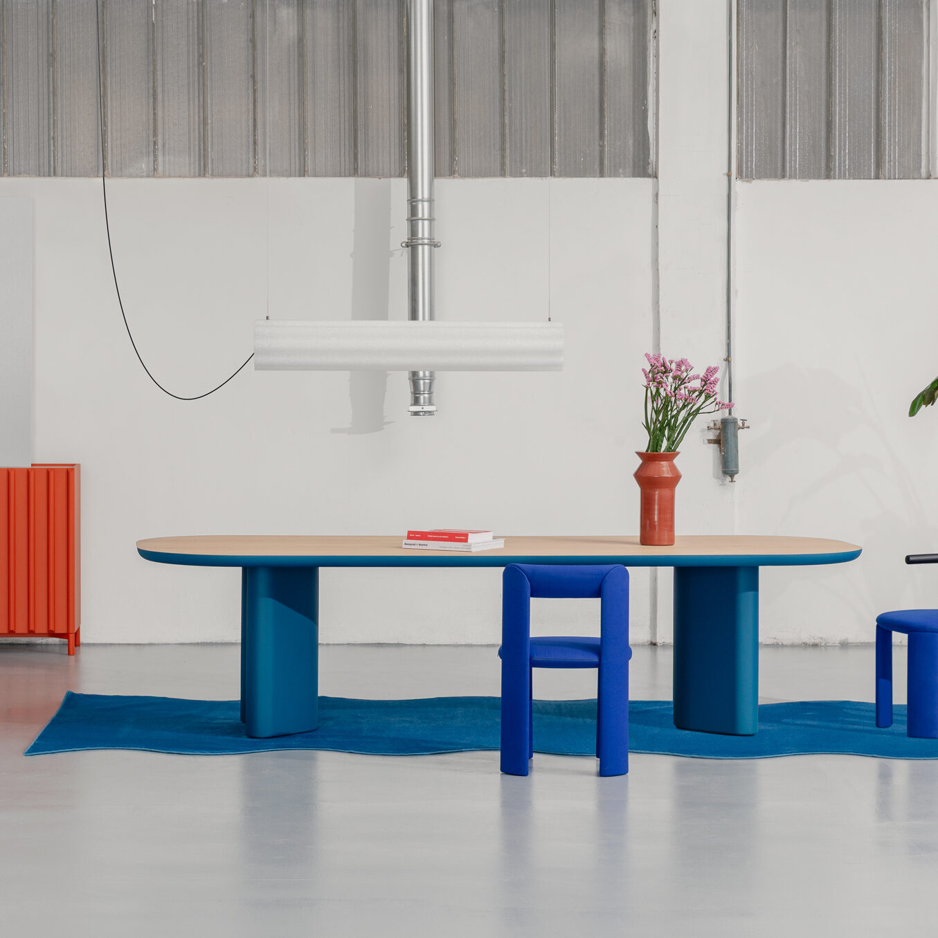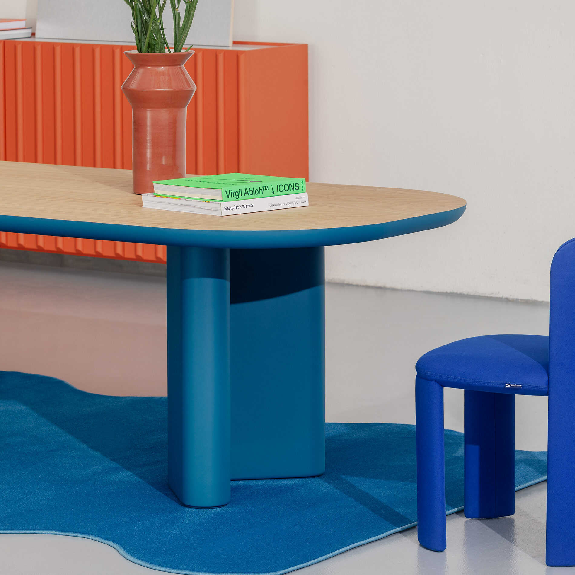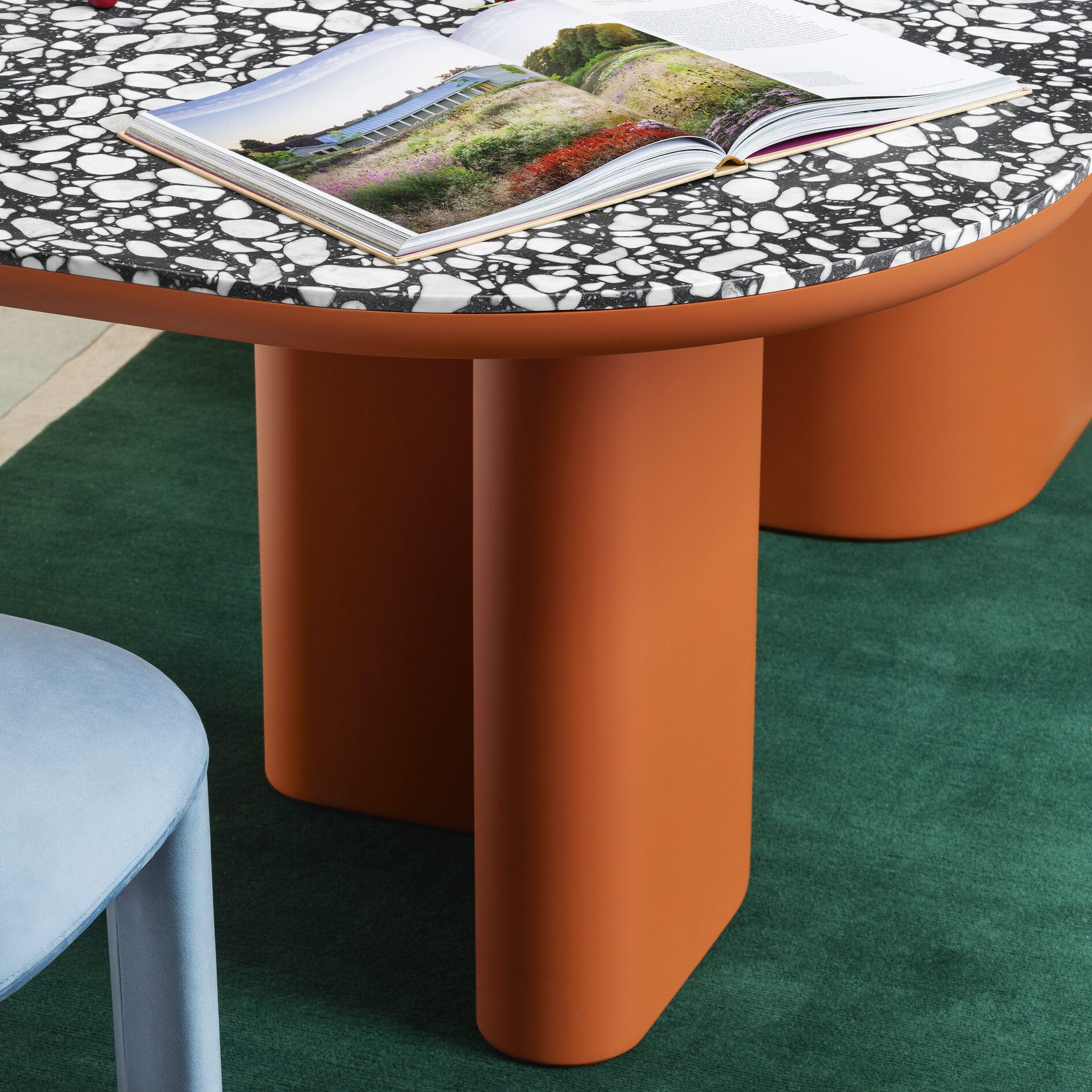 Bonbon is a soft and striking table. The curved shape of its legs determines the rhythm of how the light passes through it, creating dynamic atmospheres. But it’s the chunkiness that define its aesthetic: a simple and straightforward graphic style ensures recognition in both domestic and public spaces.