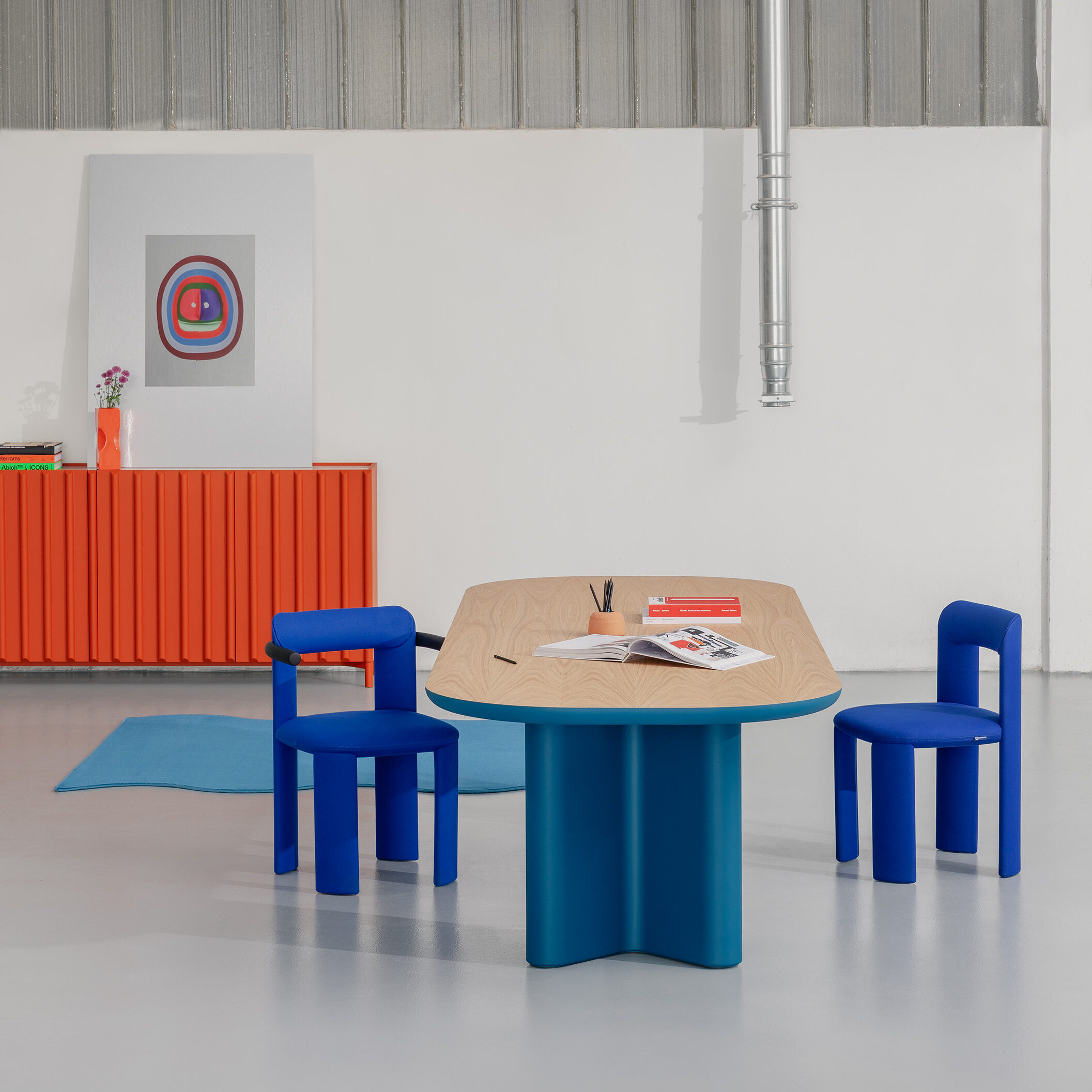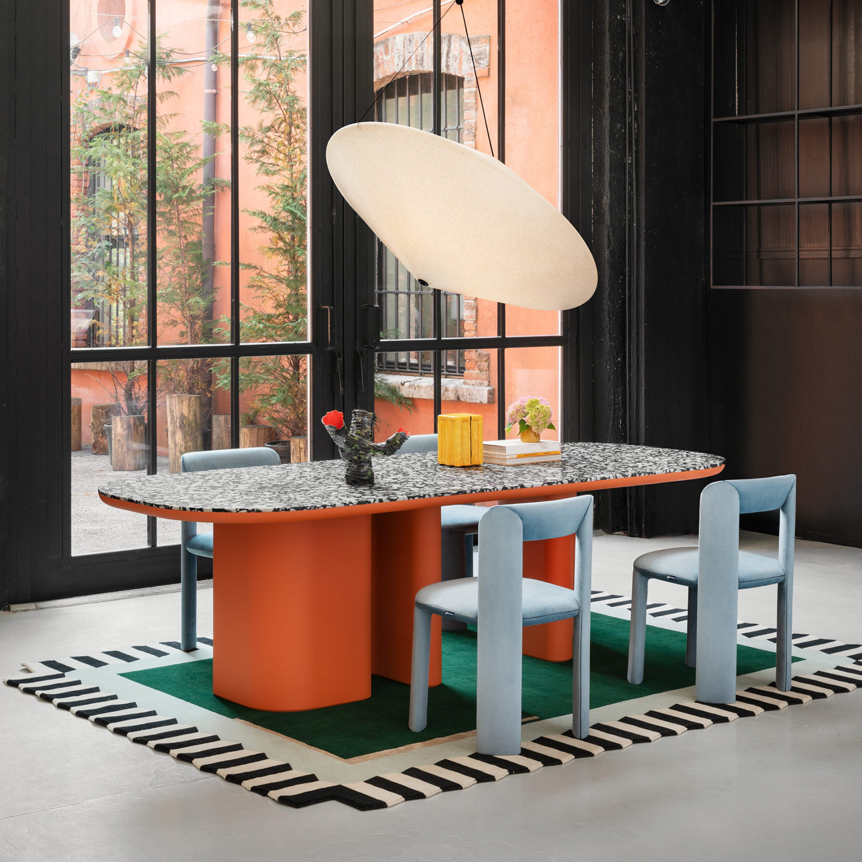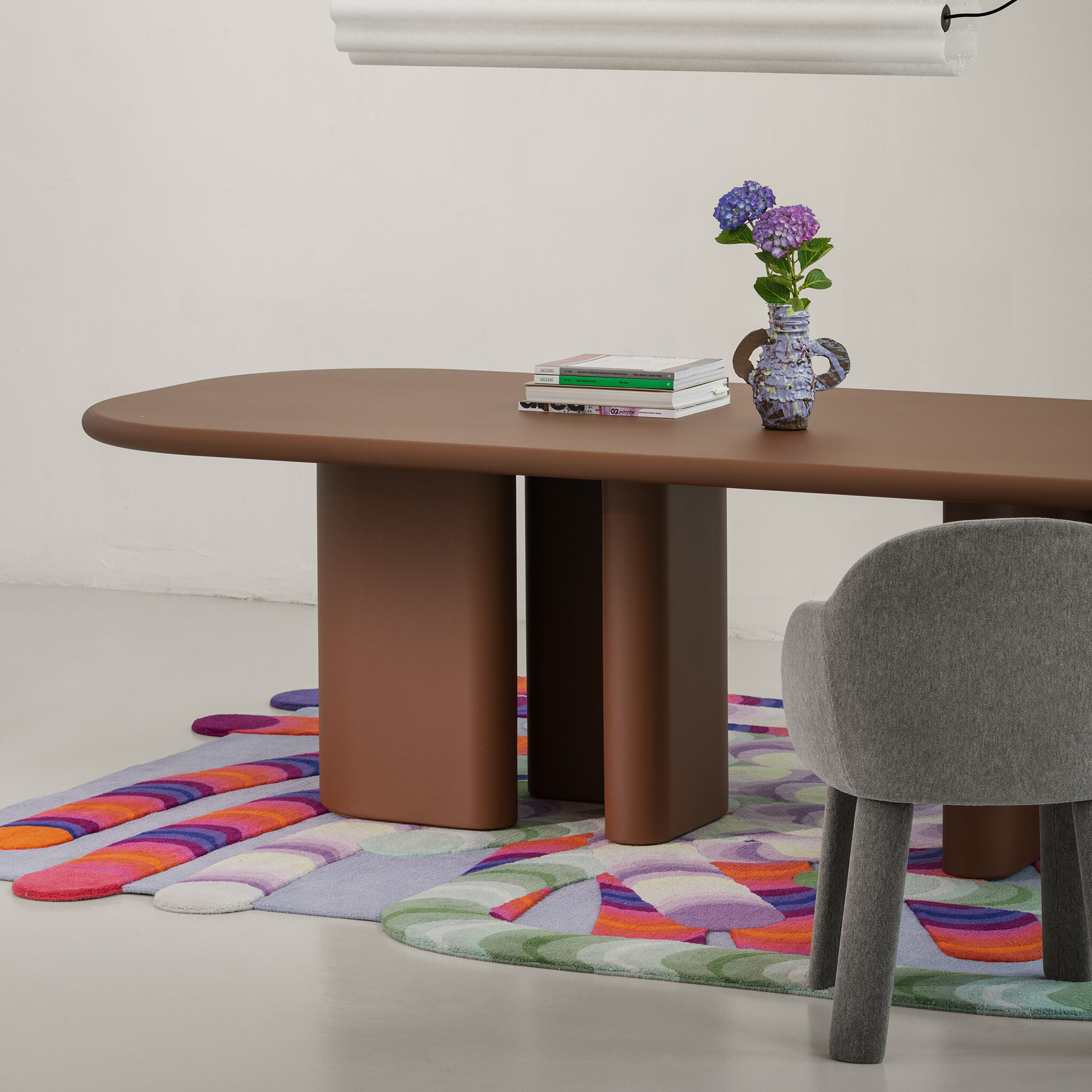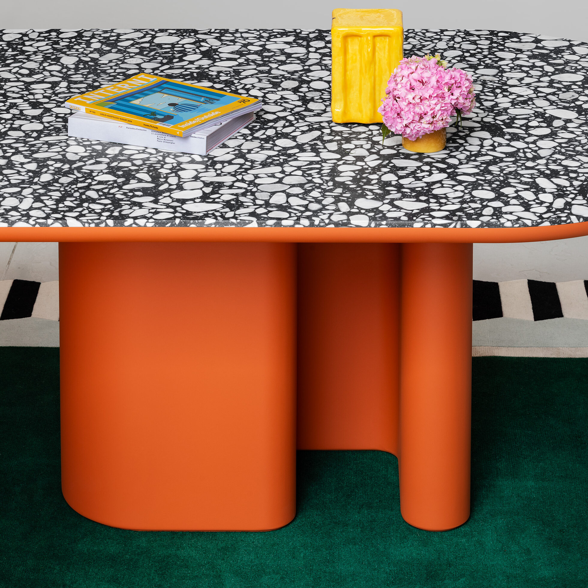Bonbon is a soft and striking table. The curved shape of its legs determines the rhythm of how the light passes through it, creating dynamic atmospheres. But it’s the chunkiness that define its aesthetic: a simple and straightforward graphic style ensures recognition in both domestic and public spaces.