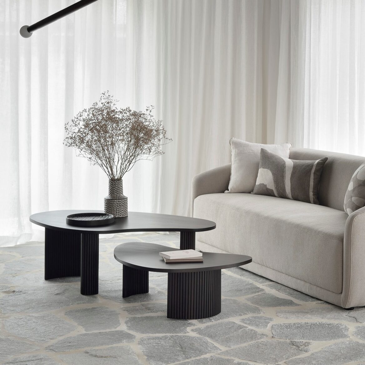 Playful, pebble shapes set on a beautiful, folded, base. The Boomerang coffee table is a fantastic and well-proportioned addition to any space. Configured with the two sizes together, or as a stand-alone, this design is sure to capture attention.