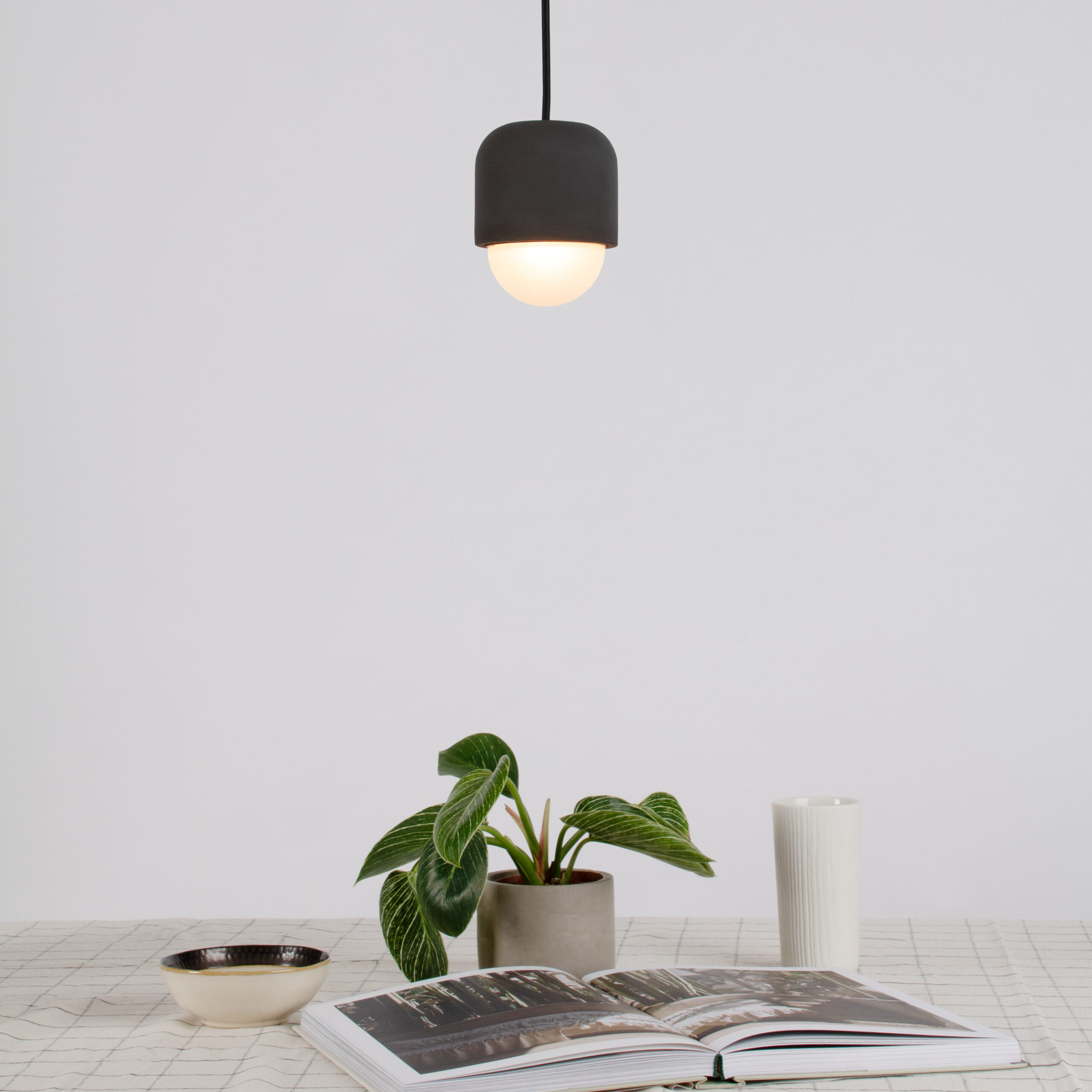 Concrete pendant in noir finish
