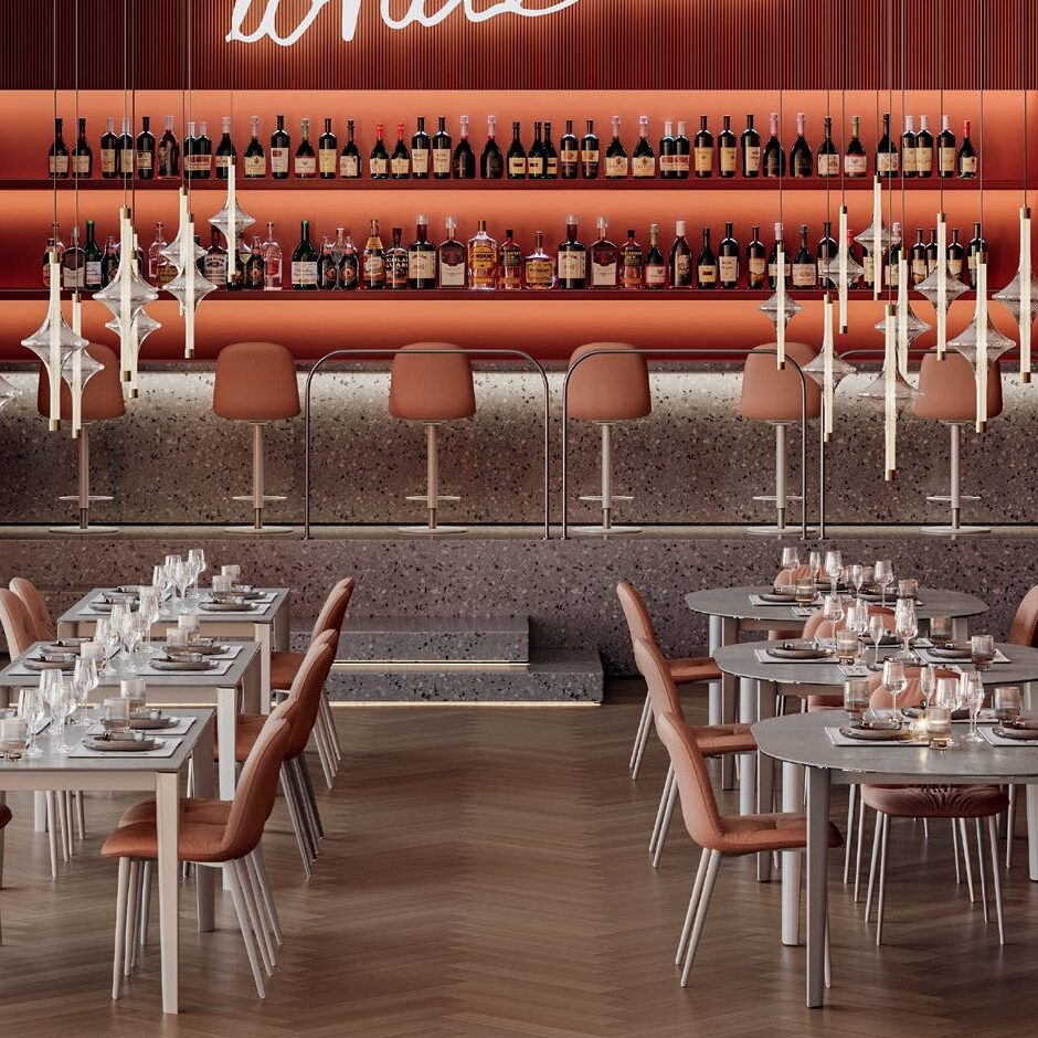 The Chantal stool is a vertical extension of its namesake chair, blending style and functionality. Its compact silhouette, shaped by squared lines and softened corners, conveys a sense of visual balance. The upholstered seat, with integrated backrest, is elevated by tailored finishes that enhance its clean design. Suitable for dining, hospitality and contemporary executive spaces, Chantal brings style to any context. Available with two base styles: a four-legged metal base, slim and polished in various finishes and a steel footrest, and a swivel, gas-lift version with integrated footrest and adjustable height.