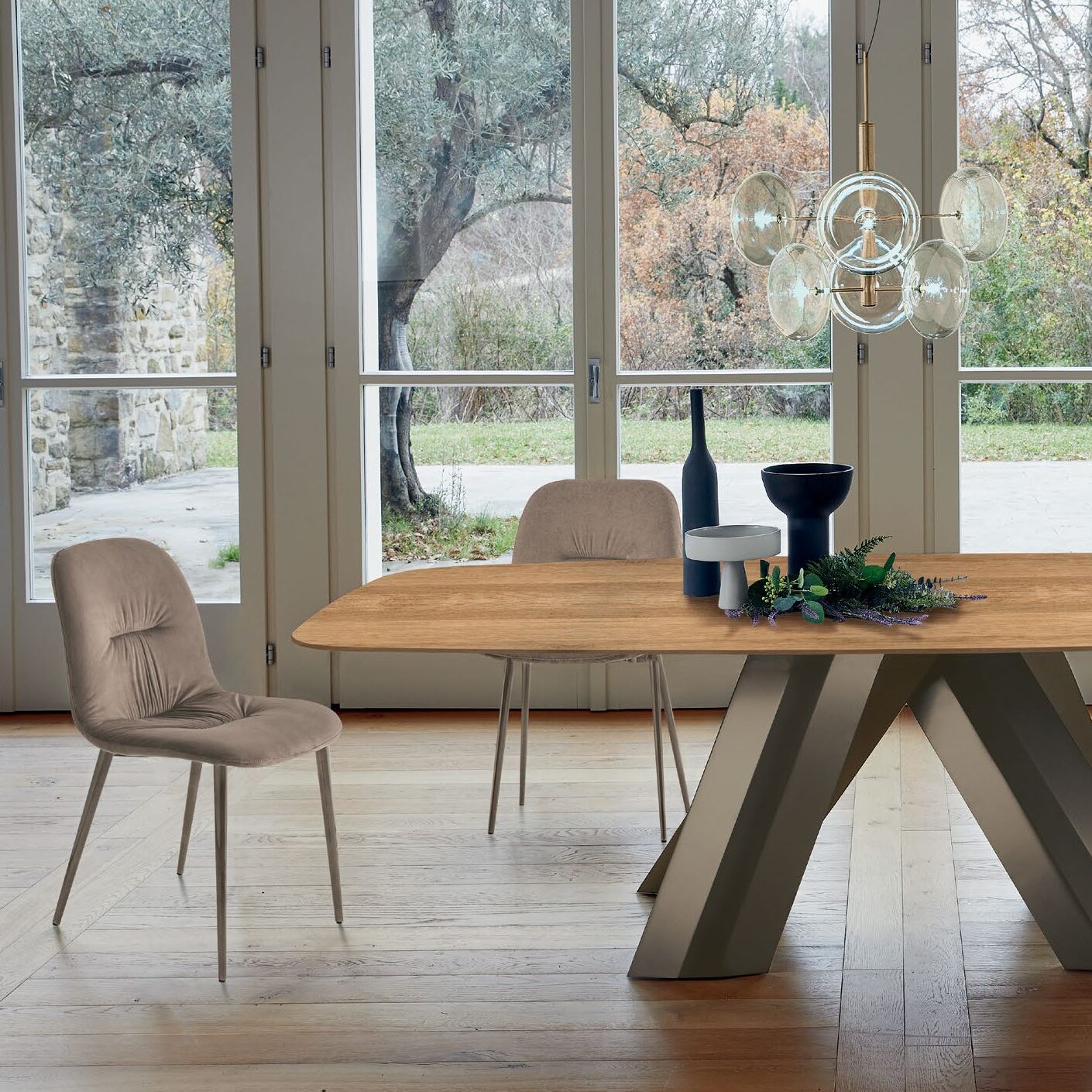 Chantal is a contemporary upholstered chair where form and function blend in perfect harmony. Its squared silhouette, softened by rounded corners, conveys a sense of visual balance, while the carefully crafted padding provides enveloping comfort. Four base options (metal, wood, swivel, office) enhance its versatility, making it suitable for dining areas, contract or professional settings.