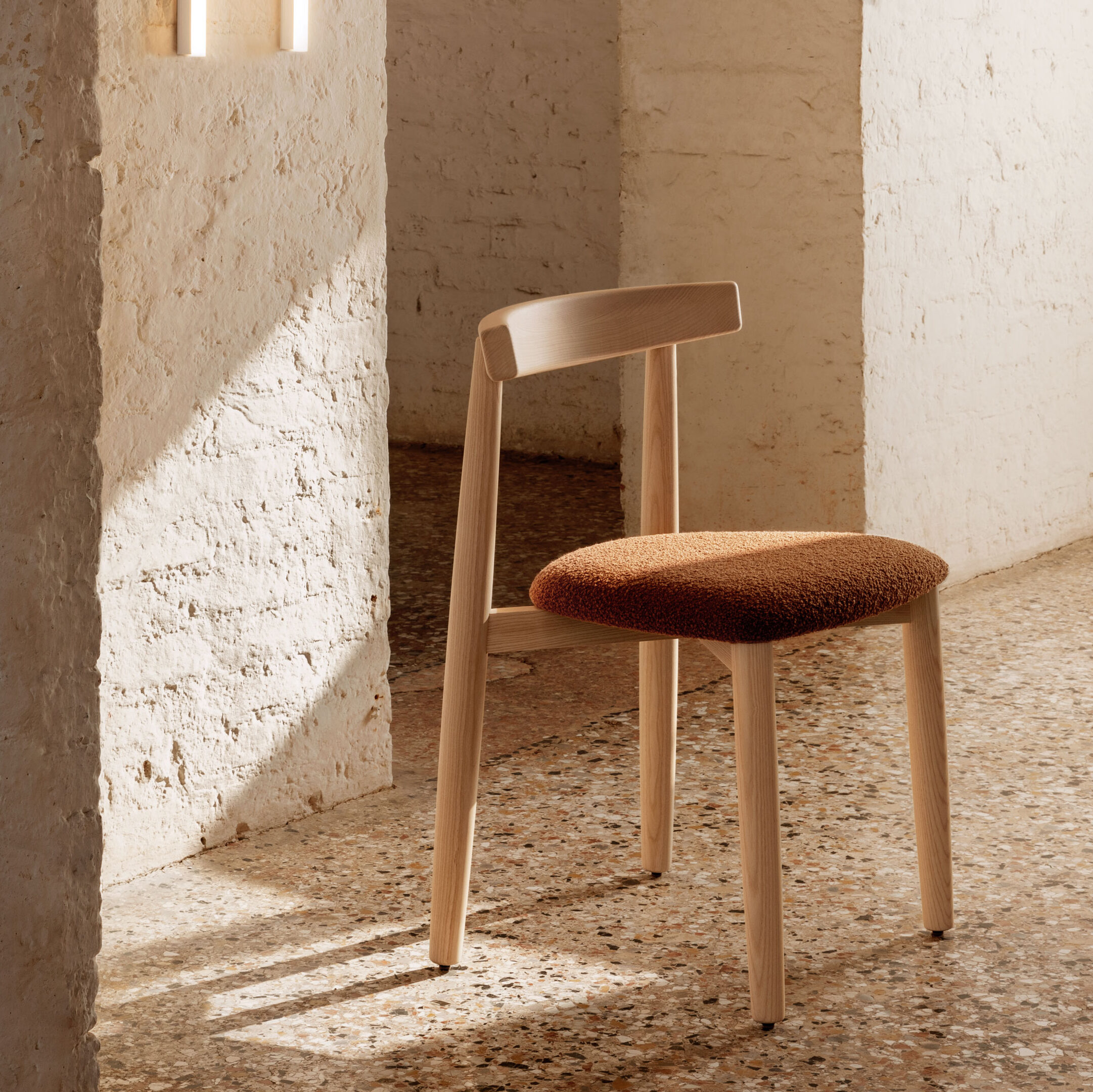 Claretta is all grown-up into a sculptural and decisive chair. The charismatic Claretta Bold Chair is available in custom fabrics and wood finishes. Claretta fits beautifully with Miniform’s dining tables, and is further enhanced by its stackability.