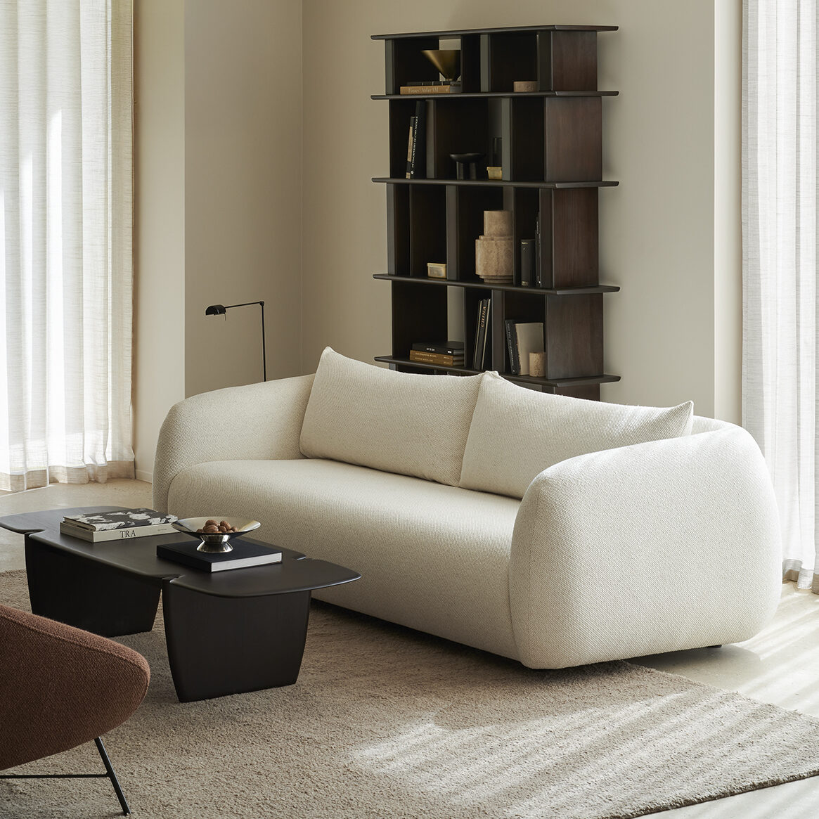 The Contour sofa pairs generous proportions with a warm, welcoming silhouette. A gently curved backrest wraps around the seat, creating a cocooning effect that feels both elegant and embracing. Upholstered in richly textured fabric and detailed with refined double stitching, Contour offers deep comfort and visual softness. Whether for quiet lounging or shared moments, it brings relaxed sophistication to contemporary living.