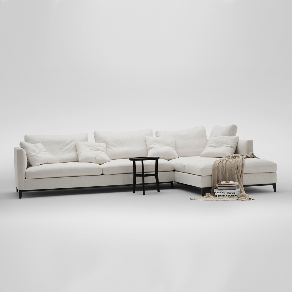 Featuring thin track arms and back with a tapered blackened steel base, the Crescent Sofa series is refined and sophisticated. A truly transitional design, the Crescent series’ simplicity allows it to be a chameleon; seamlessly harmonizing traditional with contemporary. The quiet design allows the comfortable feather covered high-resilient foam seat and back cushions to take center stage. Available as a chair, sofa or in different sectional configurations with your choice of fabric (removable) or leather upholstery.