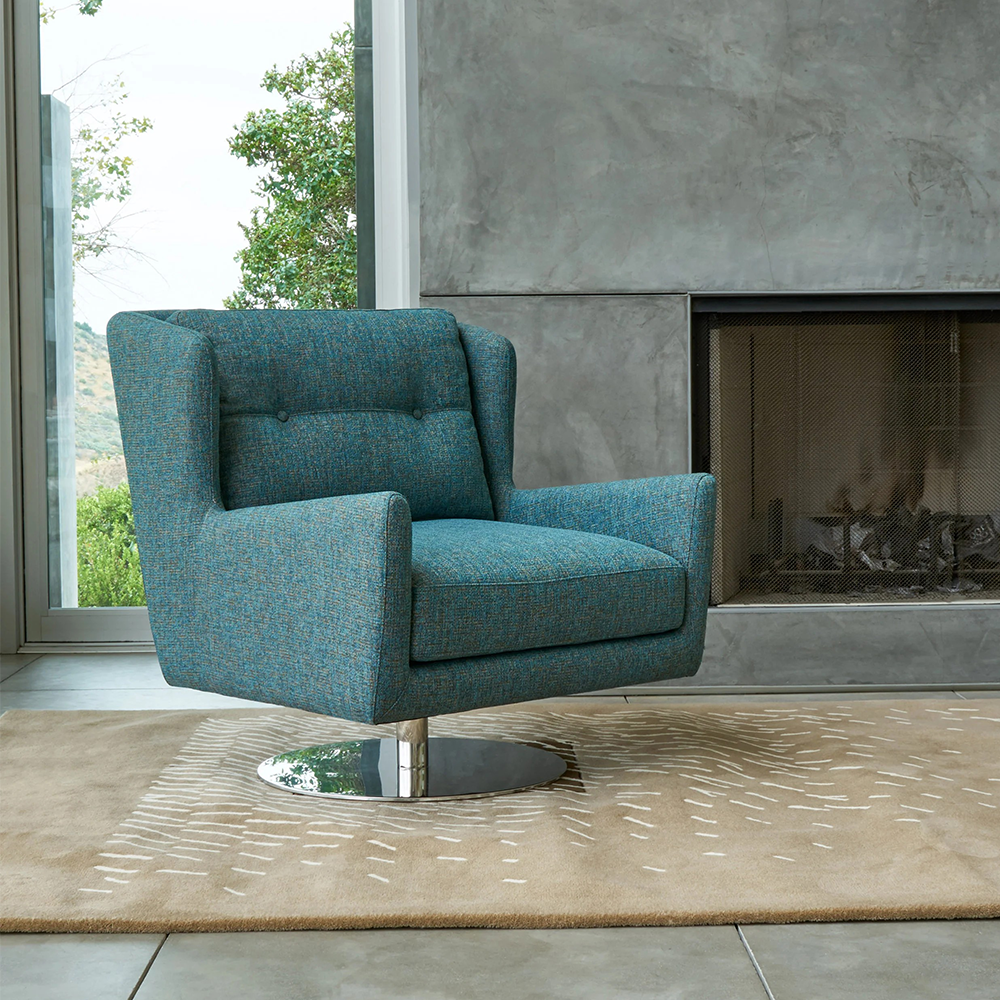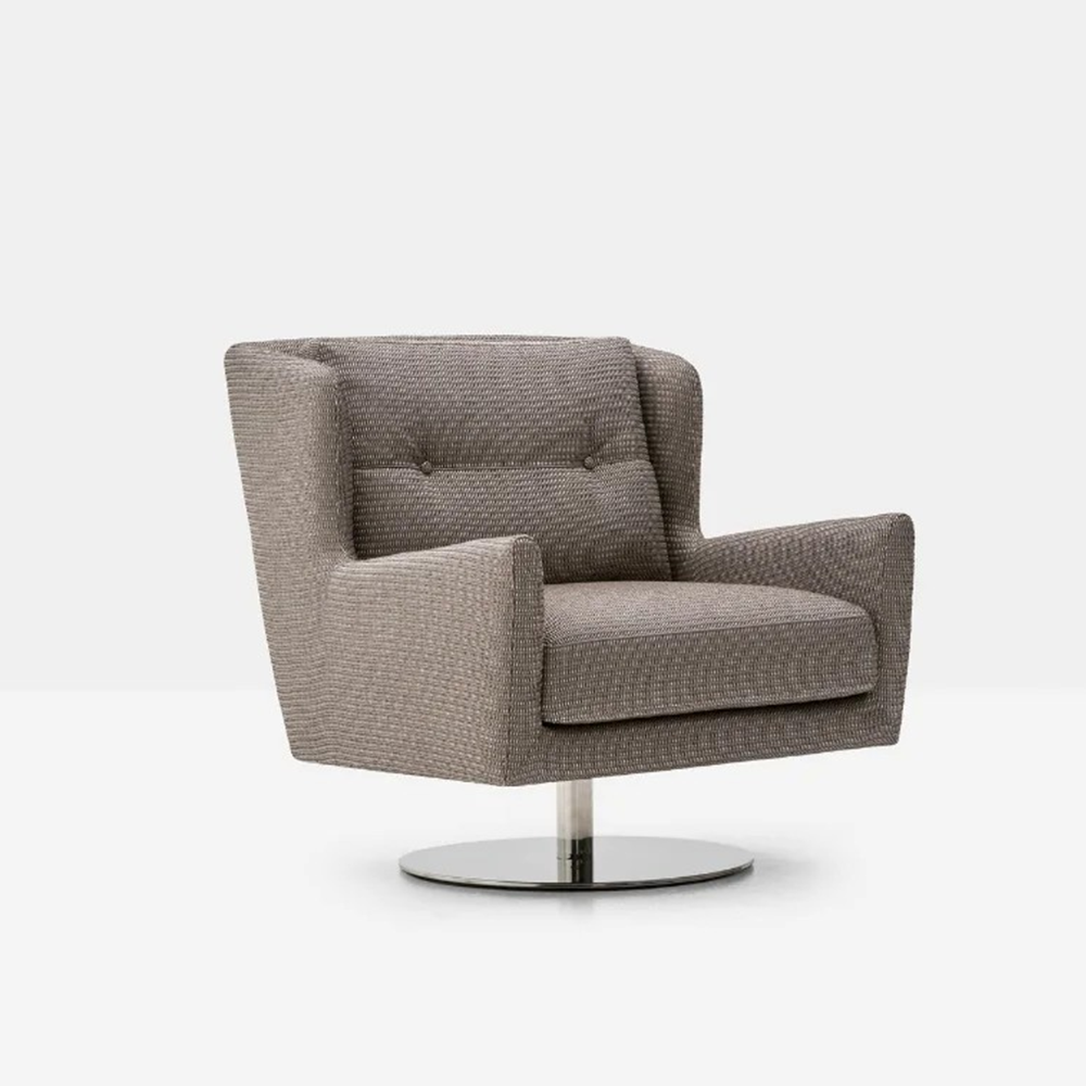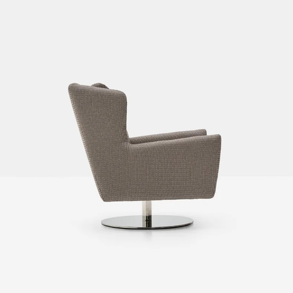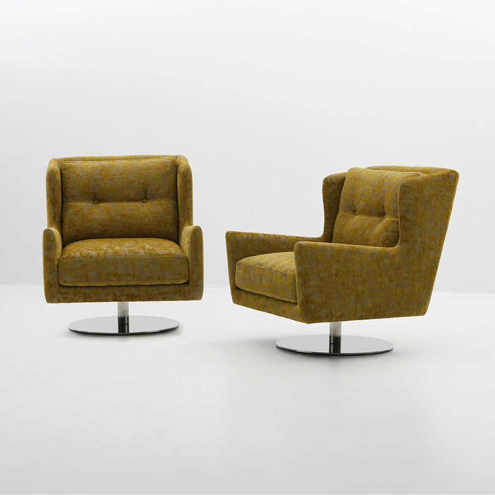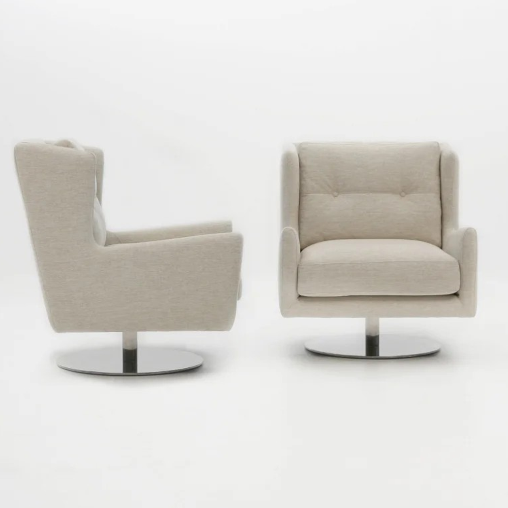 The Dalia swivel chair brings the wing chair back to life with a modern twist. The tightly tailored back and loose seat cushion combination provides the perfect pitch to sit and relax.