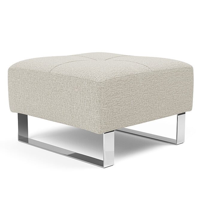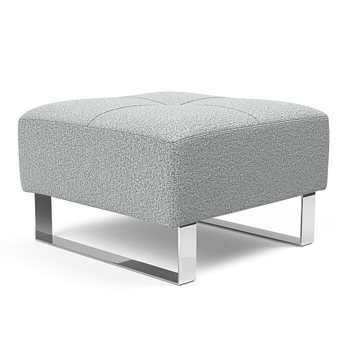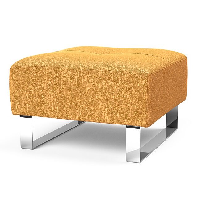 The compact and classy Deluxe Excess Chrome Ottoman by Innovation Living is ideal for small spaces. Set near a chair or sofa to create a versatile surface for a laptop, snacks or simply kicking your feet up. The Deluxe Ottoman has a contemporary cube shape with a strong chromed base and Pocket Spring softness, outfitted with a tufted top that works in casual and formal settings. Pair with the Cassius D.E.L., Ran D.E.L., or Supremax D.E.L. Sleeper Sofa for a coordinating look.