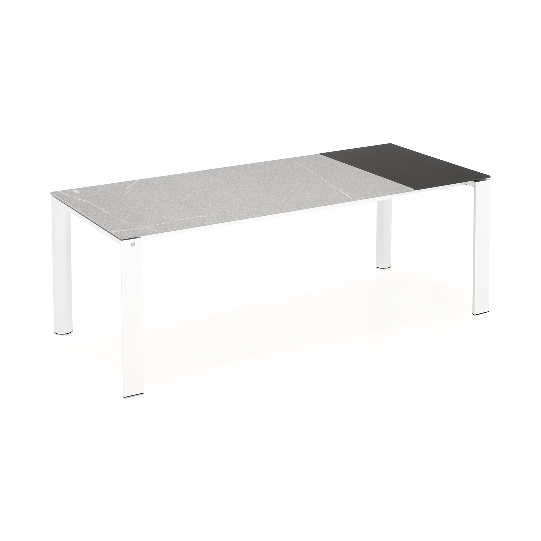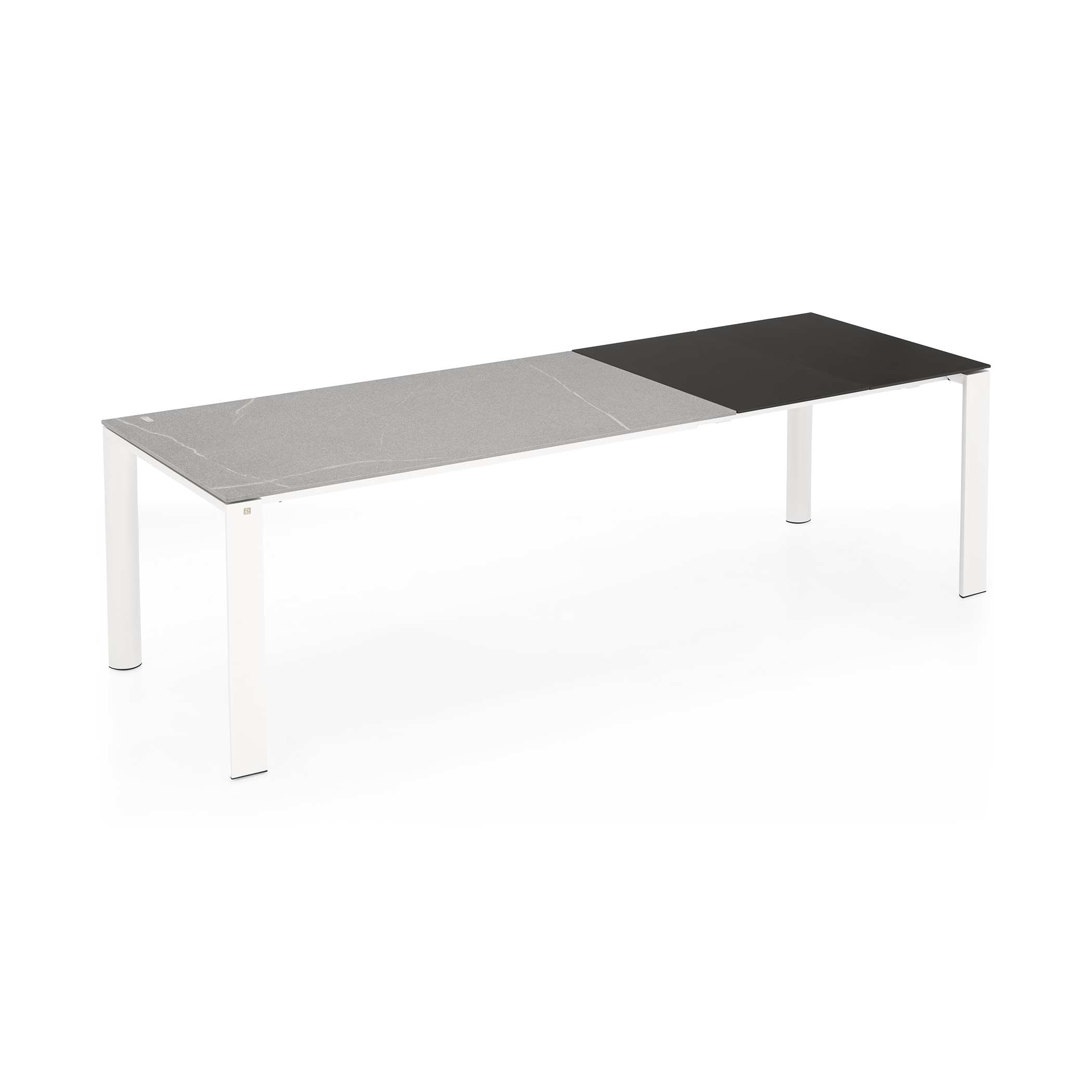 If you are looking for a practical solution for outdoor dining, the extendable Dorian Extension Table – Outdoor is just what you need. Dorian’s aluminum base has been treated for outdoor use. Choose from HPL laminate tops or a ceramic top enhanced with In-side technology. In-side ceramics offer a tactile marled finish reminiscent of natural stones, creating an unbroken effect on the top surfaces and an ultra-durable surface. All Dorian materials are easy to clean and require little maintenance. Dorian’s lateral extension leaves are matched or coordinated in HPL laminate finishes.