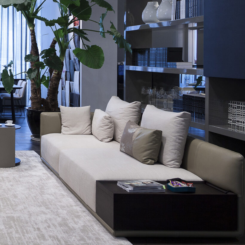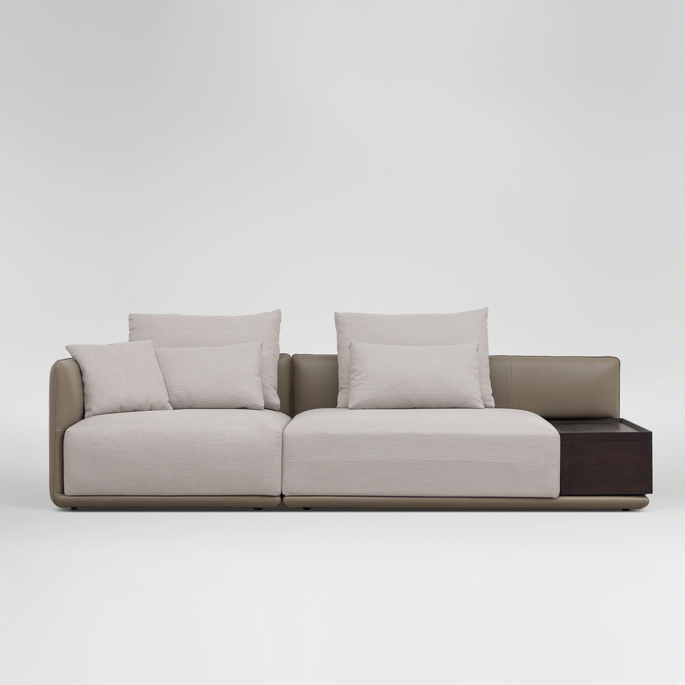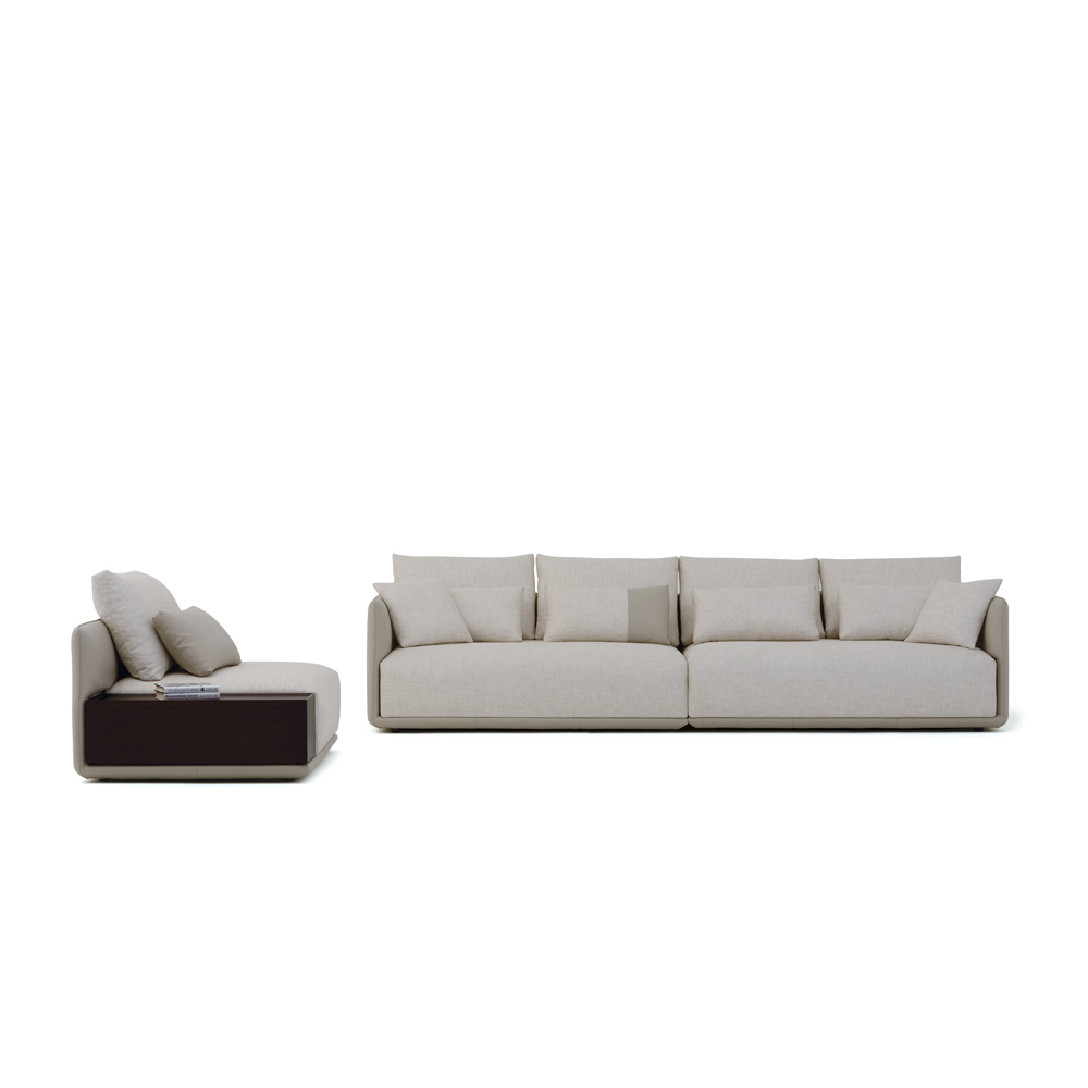 Modern and modular, the Elan-40 Sofa is the original blueprint for this cozy sectional and sofa line. Elan-40’s signature leather-wrapped frame is paired with your choice of cushion upholstery. Flexible components allow for many different configurations with this series. A practical wood storage compartment may be nestled into the Elan series, wrapped in faux leather and outfitted with a soft-close drawer. With sleek lines and an undeniable grace, Elan-40 becomes as practical as it is striking with its dense cozy cushions. Choose from sofa or sectional configurations in your choice of fabric, leather or combination upholstery.
