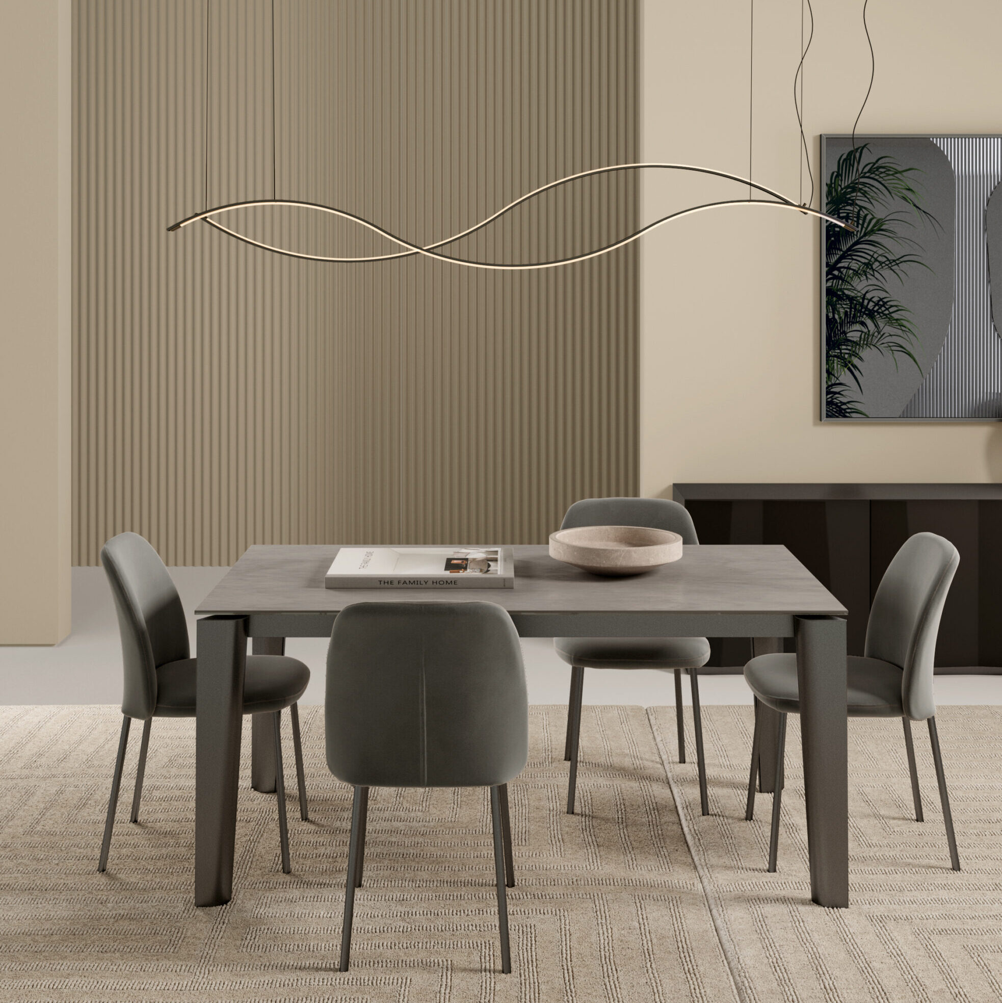 The Etro table honors timeless elegance, where geometry dissolves into curves that gently embrace the surrounding space the legs, with their distinctive, partly rounded shape, challenge traditional concepts, creating a refined pairing with the different top finishes. Available in fixed, non-extension styles as well as versions with self-storing leaves for easy expansion. Square and oval shapes also available.