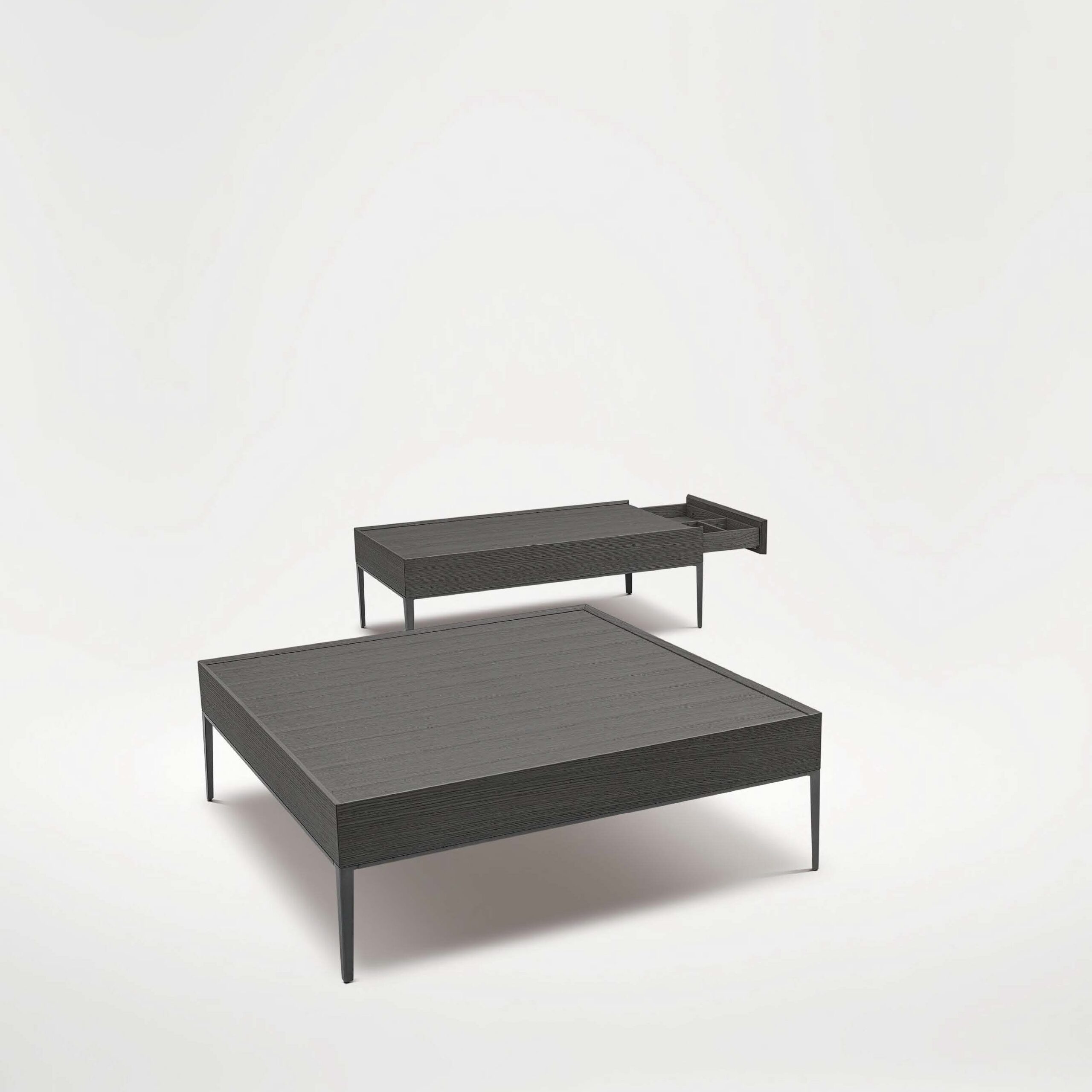 The timeless Flamingo table is built from clean lines and unpretentious personality. With a veneered wood top supported by darkened steel legs, the Flamingo is built to last. Flamingo’s top conceals push/pull drawers that extend smoothly and quietly along invisible runners. Choose from two different sizes to complete Flamingo.