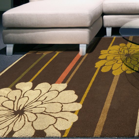 Expressive, graphic flowers play across lines and colors creating an eye catching, modern rug. Choose from various color options with this contemporary 100% New Zealand wool rug.