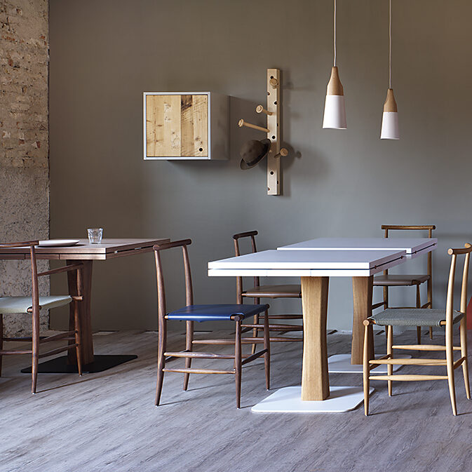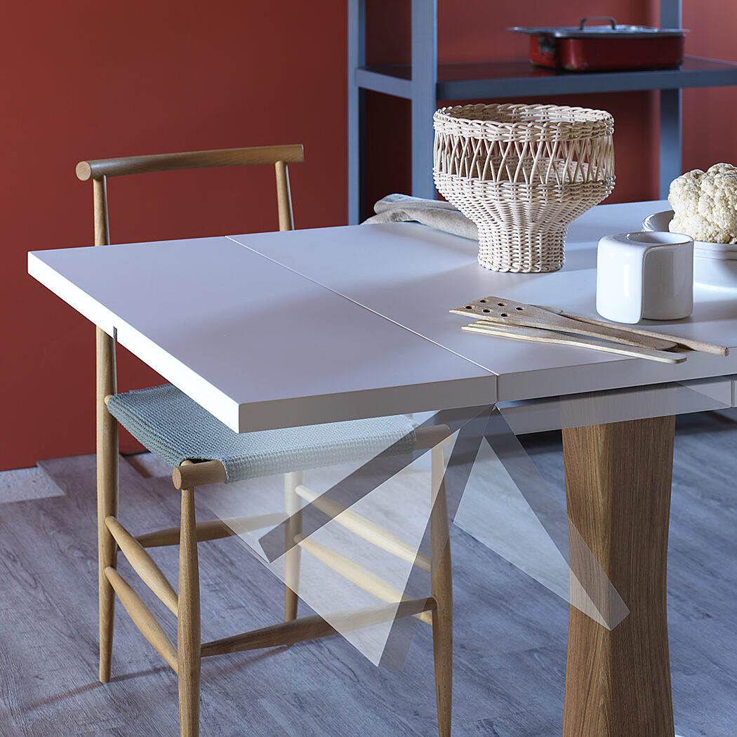 Gualtiero Plus Extension Table is an iconic yet practical dining table designed for smaller, more intimate spaces. This stylish table glides into the apartment with its many top and base options.