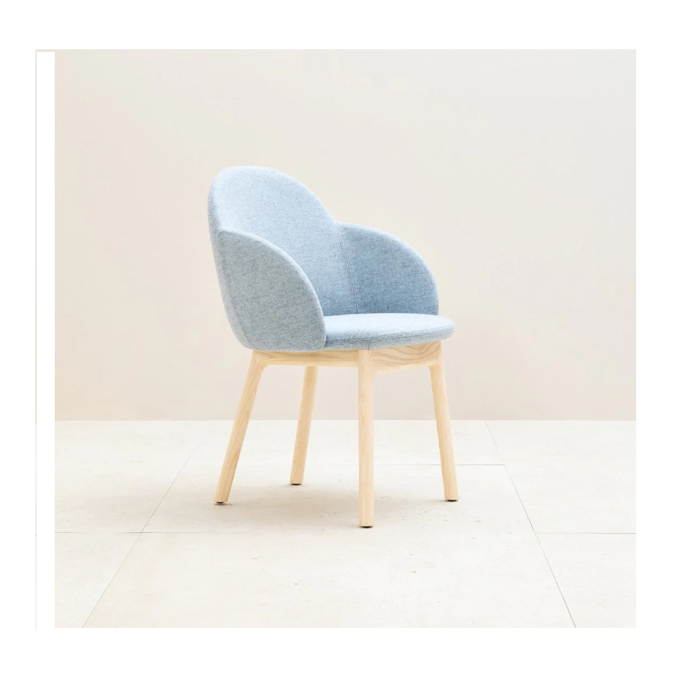 Iola Wood Armchair hints at pop culture though comes across as a modern classic. The Iola is gently cushioned with foam and finished in the upholstery of your choice. Choose from metal, wood, and office styles with the Iola chair base. Also available with or without armrests.