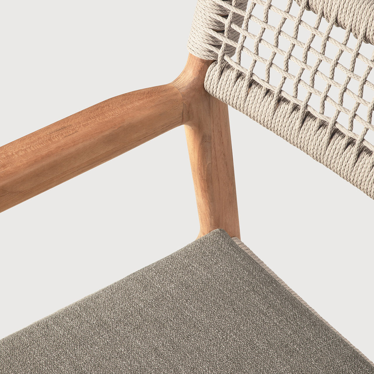 Alluring from every angle, luxuriant shapes and curves form the basis of the Jack collection. Featuring an Italian weave for the seat and back, complemented by a tailored cushion, this Jack dining chair is crafted from outdoor-resistant cord that is equally suited for indoor use. With clean, classic lines and a modern touch, every detail has been meticulously crafted to ensure comfort and elegance while enjoying the outdoors.