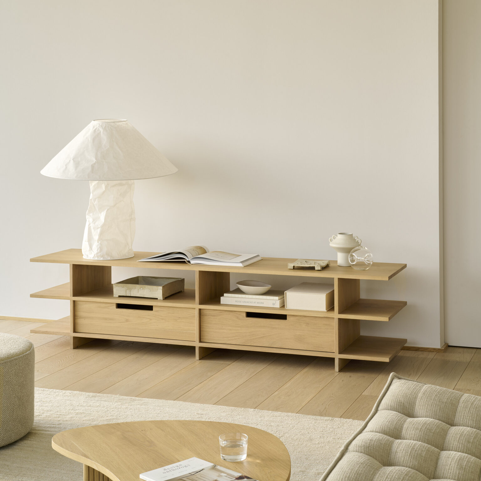 Find balance and symmetry in the Kabuki TV cupboard, available in durable varnished teak. Designed by the multitalented commercial artist Reynaldo Zapp, this item brings a sense of peace to the living space. Fully finished from all sides, the Kabuki may be placed as a centerpiece in the room.