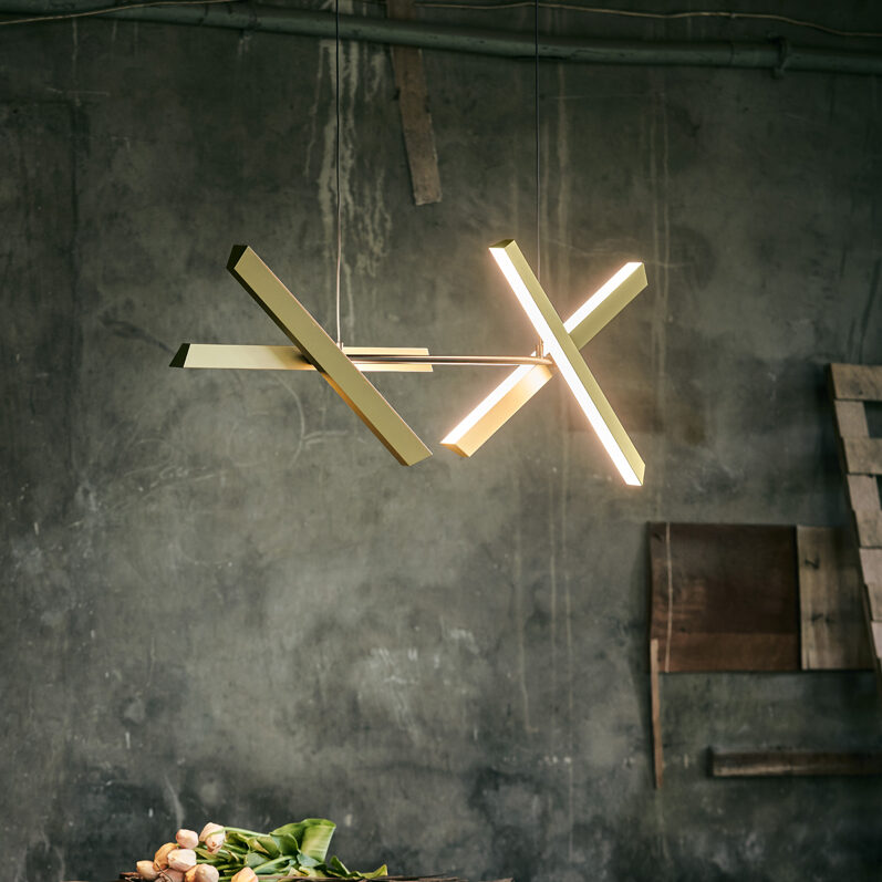 Influenced by modernist architecture, the KONNECT by Seed Design is beautifully crafted in quality materials. Offering both functional and versatile illumination configurations, the KONNECT Pendant PL4 delivers various adjustable angles to each of its linear lighting elements. Utilizing integrated LED lighting the KONNECT offers Color Rendering (CRI 98) which lends a warm, natural glow to the environment. The Konnect series is fully dimmable as well.