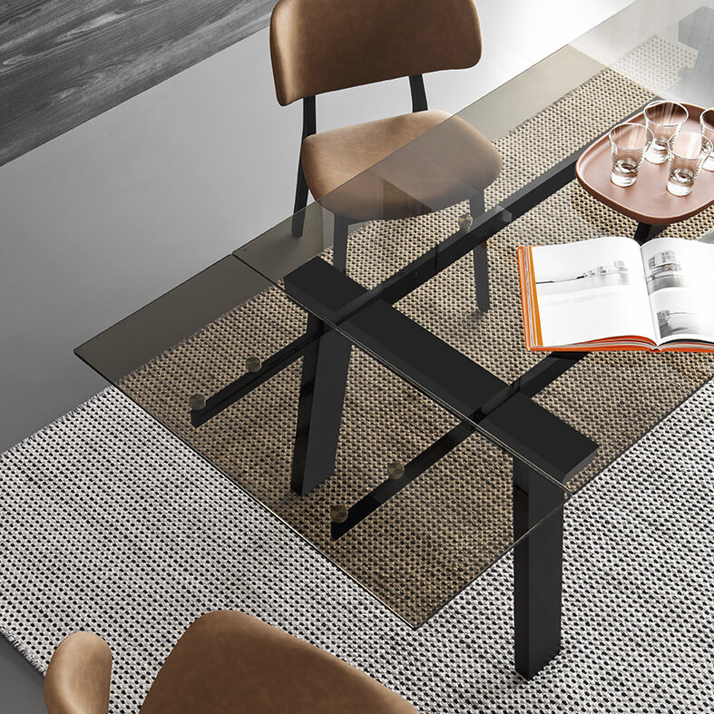 The refreshing Levante designed by Calligaris Studio combines the organic nature of wood with a refreshing glass extension top. Levante’s transparent top allows for enjoyment of the base and reveals a “pop” of visual interest with its lacquered aluminum guides. Levante is outfitted with two twin glass extension leaves, allowing for independent operation. Choose from several wood base options to customize your Levante.