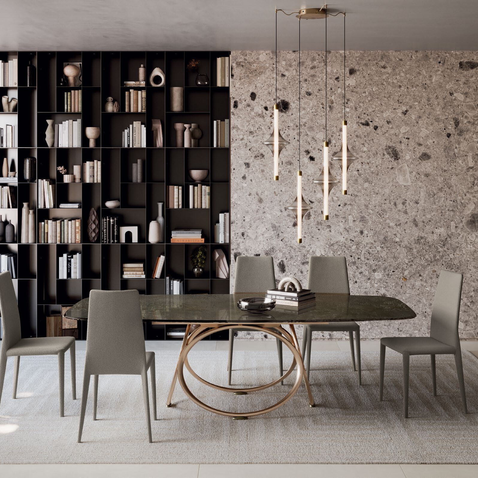 The LOUIS Barrel Table is a table with a sculptural presence, majestic, disruptive, sophisticated. Its formal poetry is evident in an apparent simplicity: the ethereal structure consisting of ovals in start contrast to the horizontality of the top creates a singular play of perspectives and an impeccable balance of shapes.