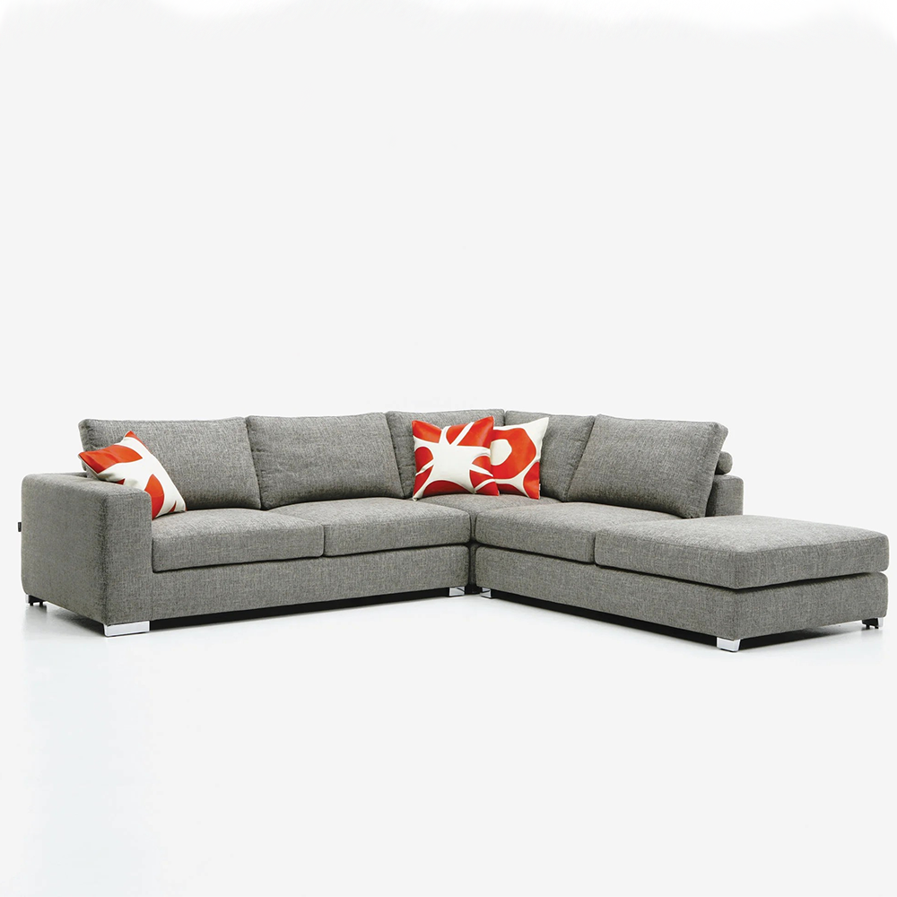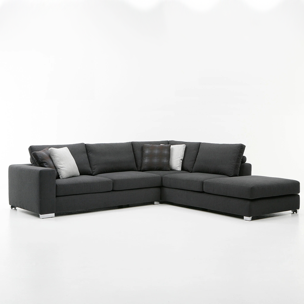 Welcome the Marc sectional into your living space. Crafted with a modern aesthetic, Marc features a low base, clean lines and spacious seating. With a polished contemporary steel foot and endless upholstery options the Marc is a natural choice for relaxed gatherings. Marc’s ample proportions invite you to sink in and unwind, while the sturdy construction ensures lasting durability.