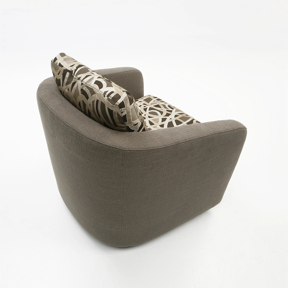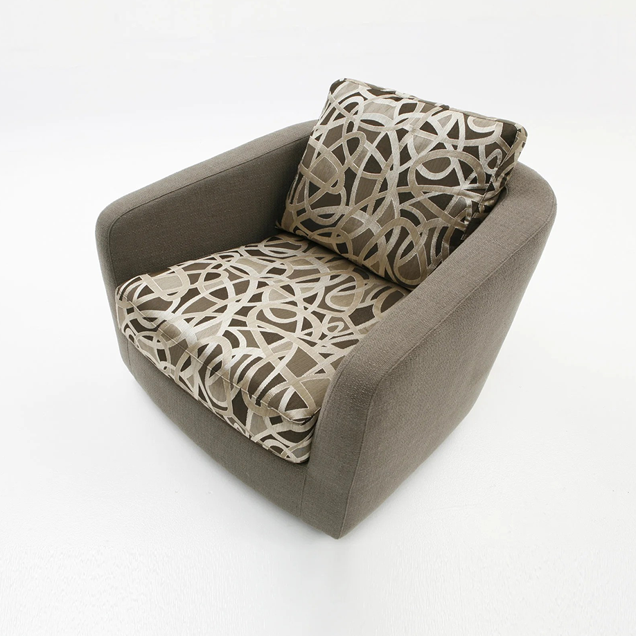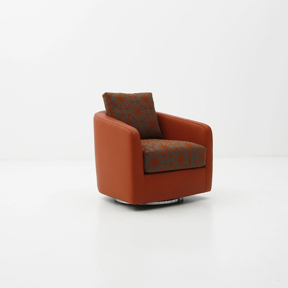 Complement any room decor with the versatile and comfortable Maya swivel chair. This chair is the perfect couture touch for a living room, bedroom, library, or study. Maya is offered in a wide range of upholstery options to suit your interiors.