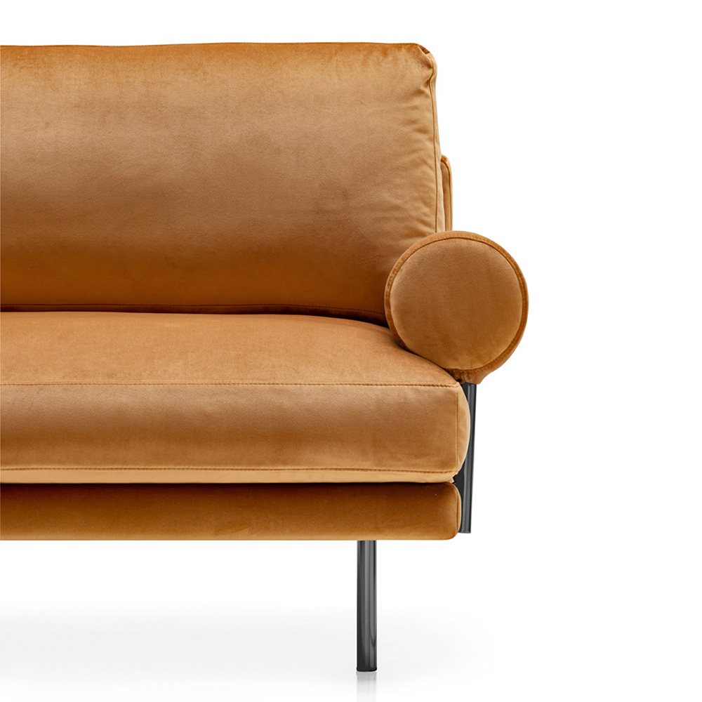 Delivering comfort in style, the sophisticated Mies sofa invites you to relax. The Mies Roll Sectional offers a unique twist on the original Mies with its metal-detailed roll armrests. The original Mies sofa is designed by Stefano Cavazzana and takes its name from Mies van der Rohe, the architect who designed the Barcelona Daybed in the 1930’s which features an iconic roll pillow. Pair your Mies Roll with an a la carte roll cushion in the upholstery of your choice. Choose from fixed sofa options or sectional configurations, all offered in Calligaris’ full range of fabric or leather.