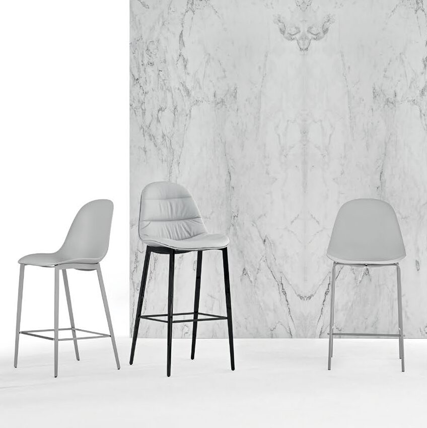 The Mood stool is the natural evolution of its namesake chair, maintaining the balance between geometric discipline and tailored comfort. The seat, featuring compact volumes and soften corners, is elegant yet understated. The lacquered steel frame is available in a slim tubular design or a more substantial triangular metal silhouette; both offering stability without sacrificing lightness. Available in a durable and easy to clean polypropylene (suitable for outdoor use) or with an upholstered seat for added comfort.