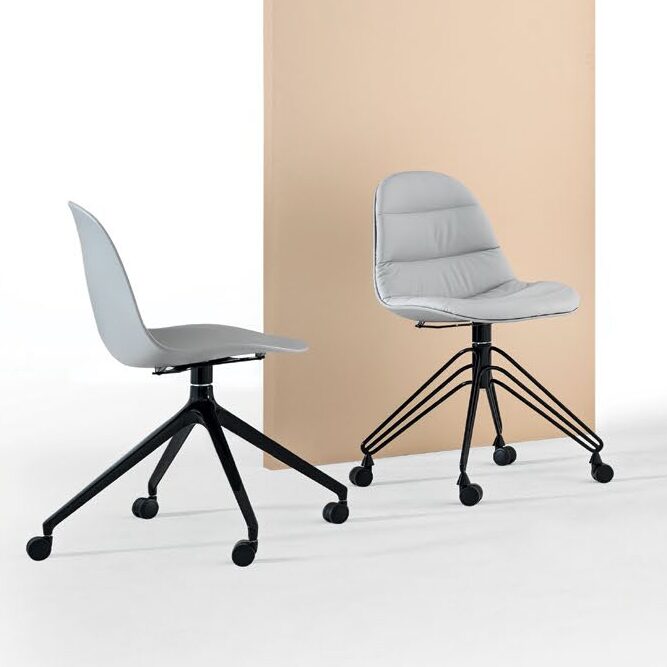 Mood is a versatile collection designed to bring style to every setting – from home interiors to more demanding contract and outdoor spaces. Variations range from solid wood to painted steel to lacquered aluminum swivel bases and office solutions with rolling castors, offering stylish and functional solutions suited for various needs. The seat, wide and embracing, combines comfort and elegance in an understated yet refined design. Available in sleek polypropylene, durable and easy to maintain, or upholstered with a soft channel quilted seat for added comfort, the Mood series is sure to have the perfect combination of form and function for your design needs.