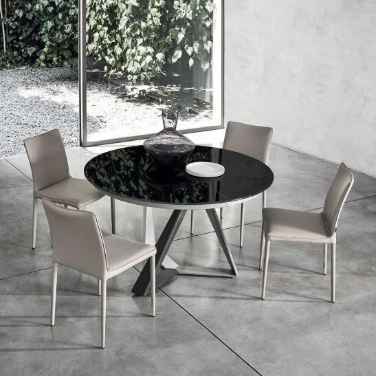 The Nata chair is an elegant synthesis of minimalist design and comfort. Its slim profile optimizes the space both visually and spatially. With either contrasting slender steel legs or matching legs wrapped in the same fabric or leather as the seat, the Nata’s customization is only beginning. You can also choose between matching or contrasting piping to highlight the sleek lines of the seat and opt for a quilted back panel taking a simple design to the next level. In the Nata Flex variant, the flexible backrest naturally echo’s the body’s movements providing additional comfort without sacrificing the sleek silhouette. A casual, low-back or more dramatic high-back version can be selected in the Nata series, the Flex version only available with a high-back.