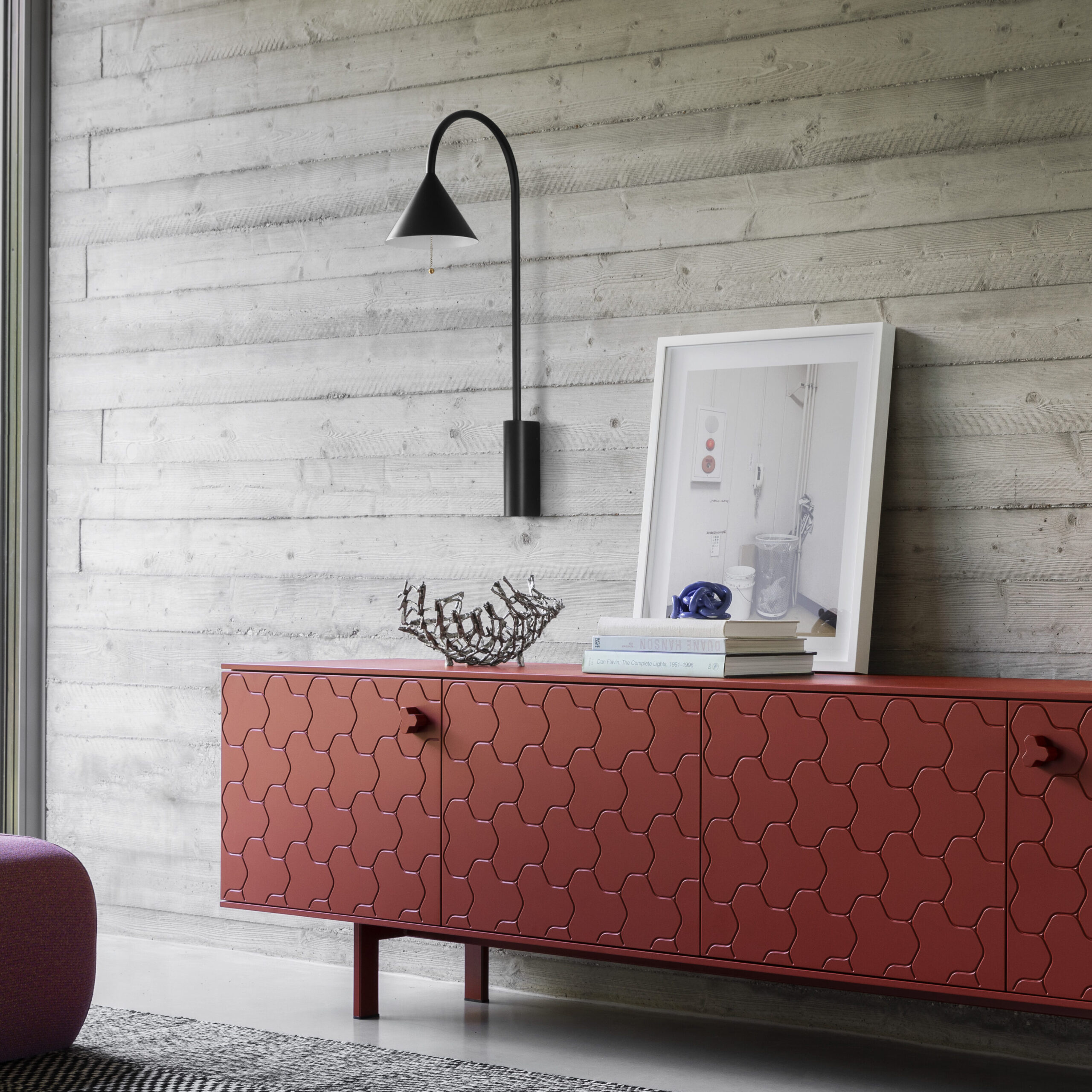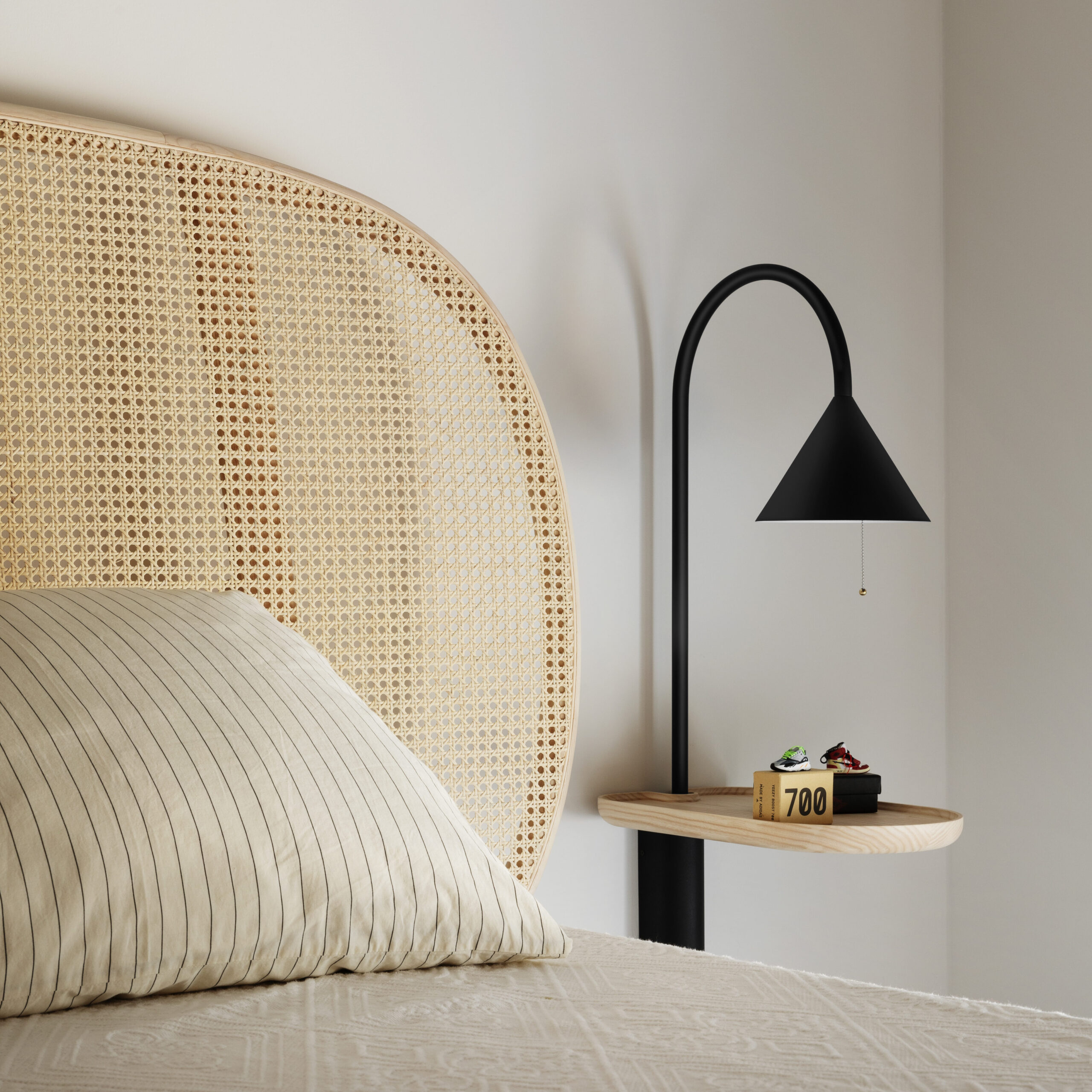 A more discreet Ozz, but with the usual temperament. In Ozz Wall S Light it grows longer: the arch narrows as the height increases, getting itself noticed in this role as a bedside table. In the full-option version it is fitted with a handy shelf, which projects into the room to form the stage for a new show, in which light plays the leading role.