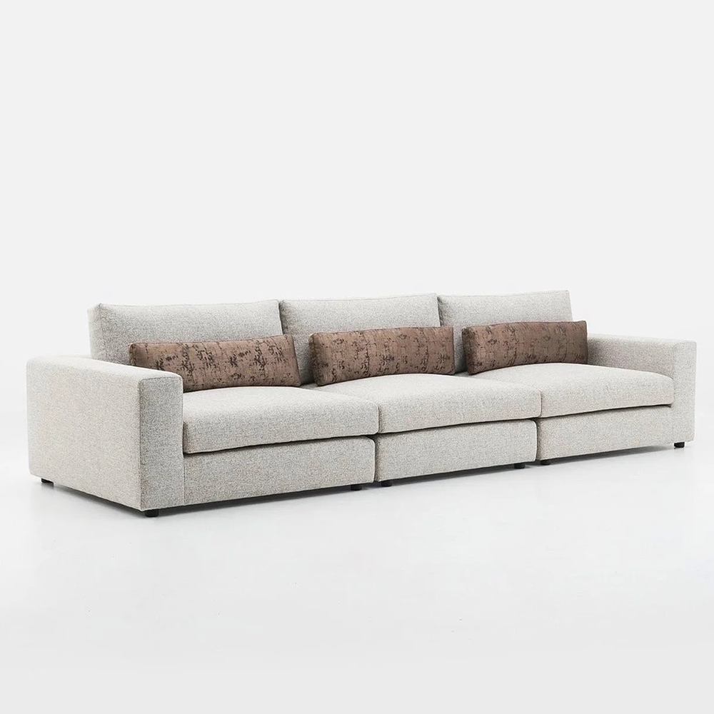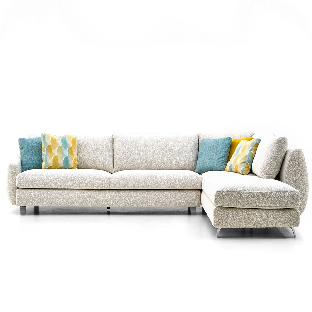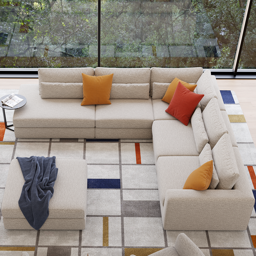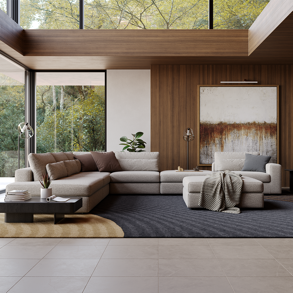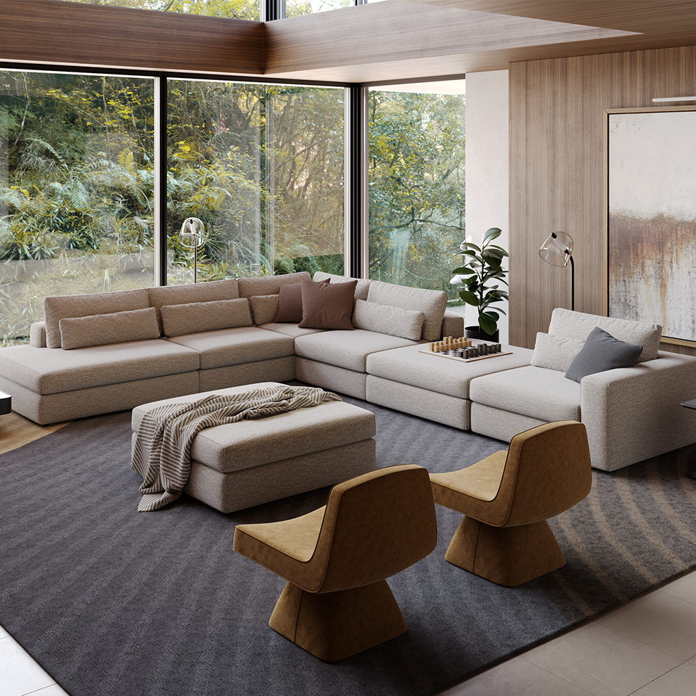 Experience unparalleled relaxation with the Ross sectional; designed for modern lifestyles. Ross combines plush seating with sleek lines, making it the perfect centerpiece for your living space. Its versatile design allows you to arrange it to fit your room perfectly, whether you’re entertaining guests or enjoying a cozy night in. Choose from a variety of upholstery options to transform your home. Ross is paired with supportive lumbar cushions which may be customized to add a pop of color.