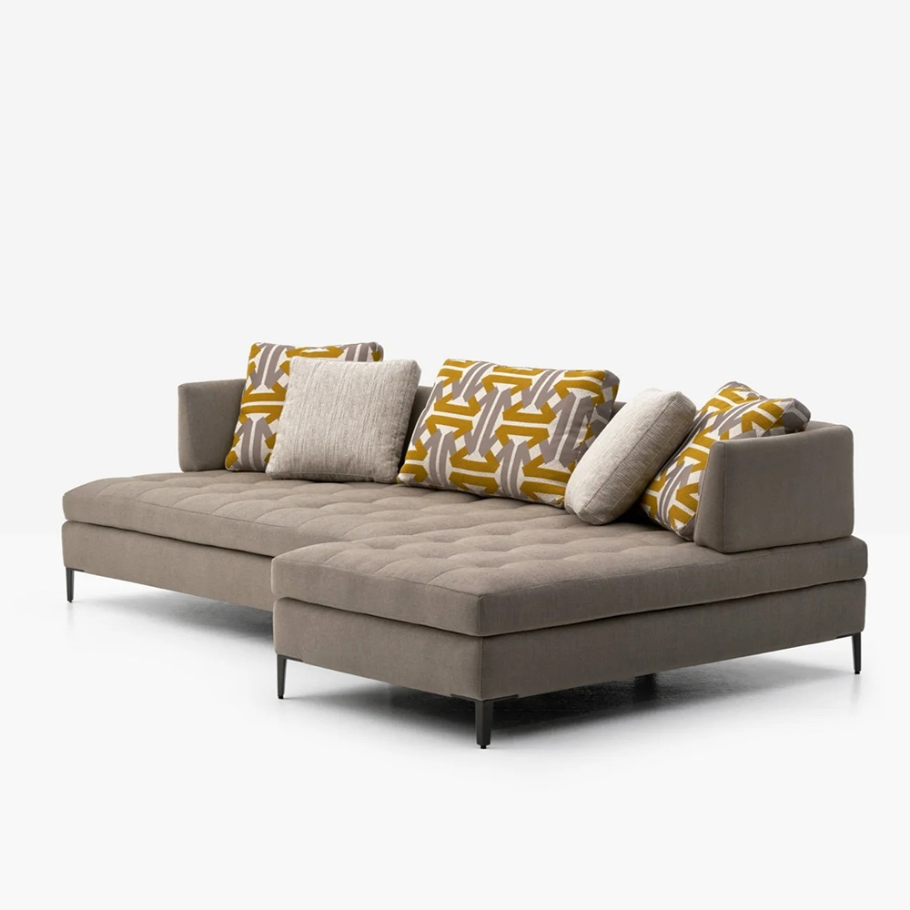 Chase offers a masculine yet sleek approach to the contemporary sofa/sectional. Offered in your choice of upholstery options, Chase is outfitted with low, supportive back cushions filled with a comforting down blend. A la carte cushions are available in pops of color to liven the design. Chase’s straightforward modules are easily configurable to build a gathering space.