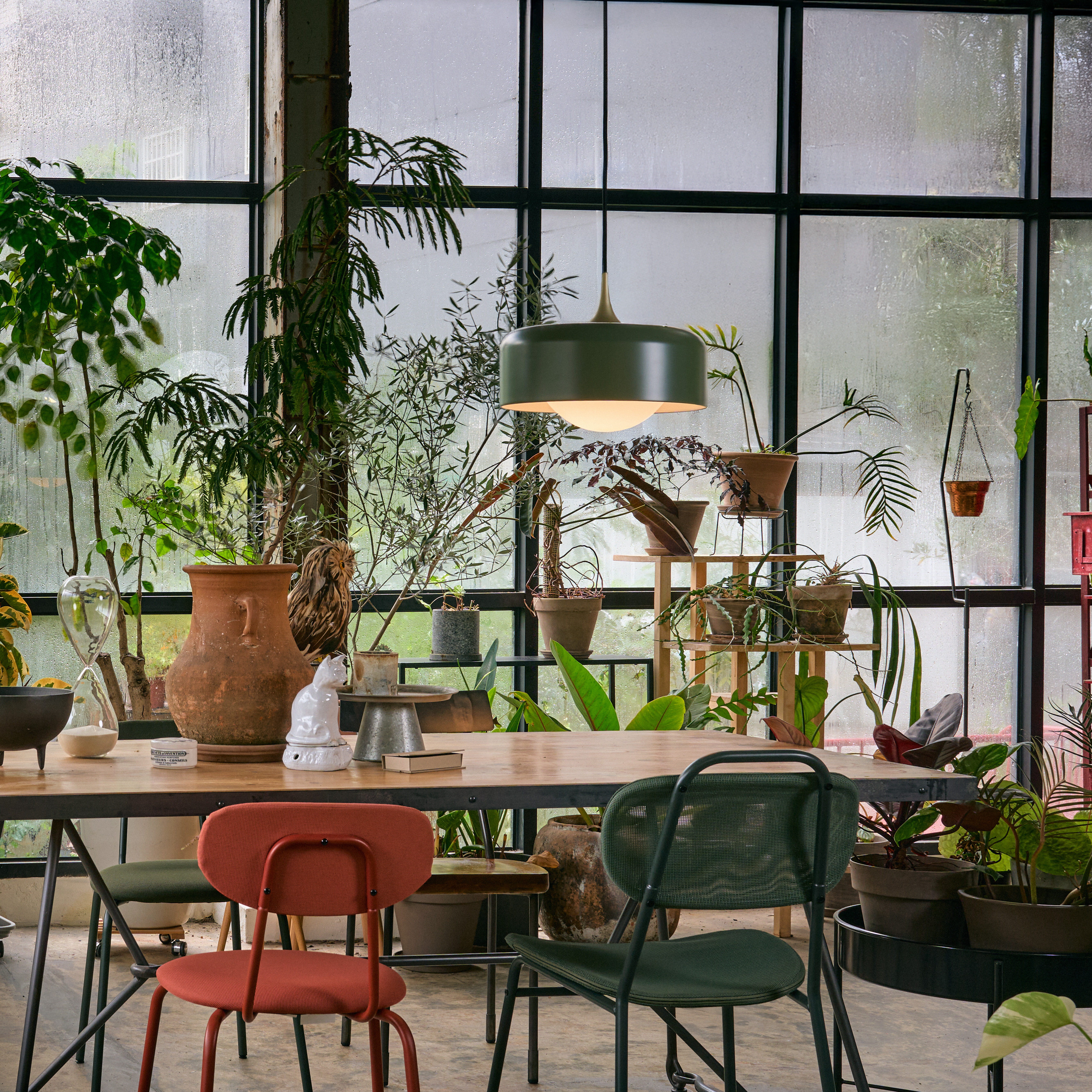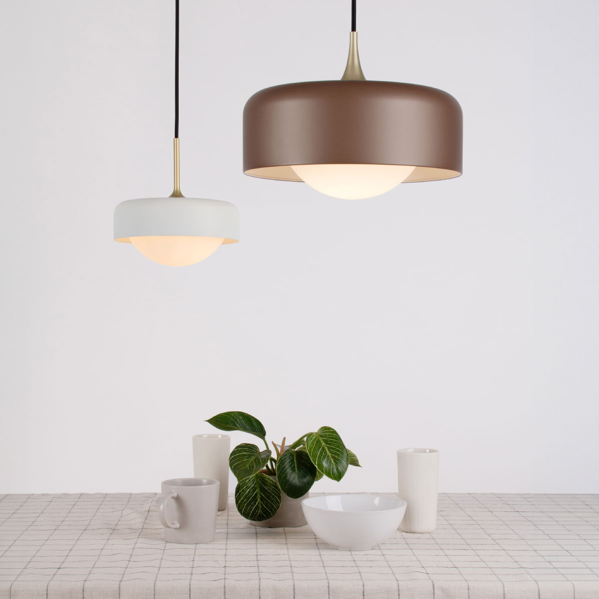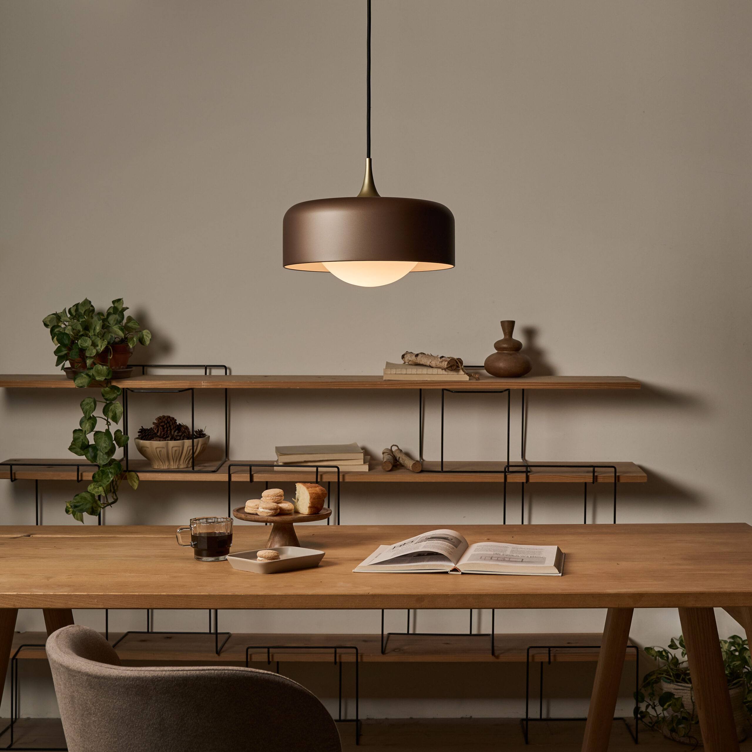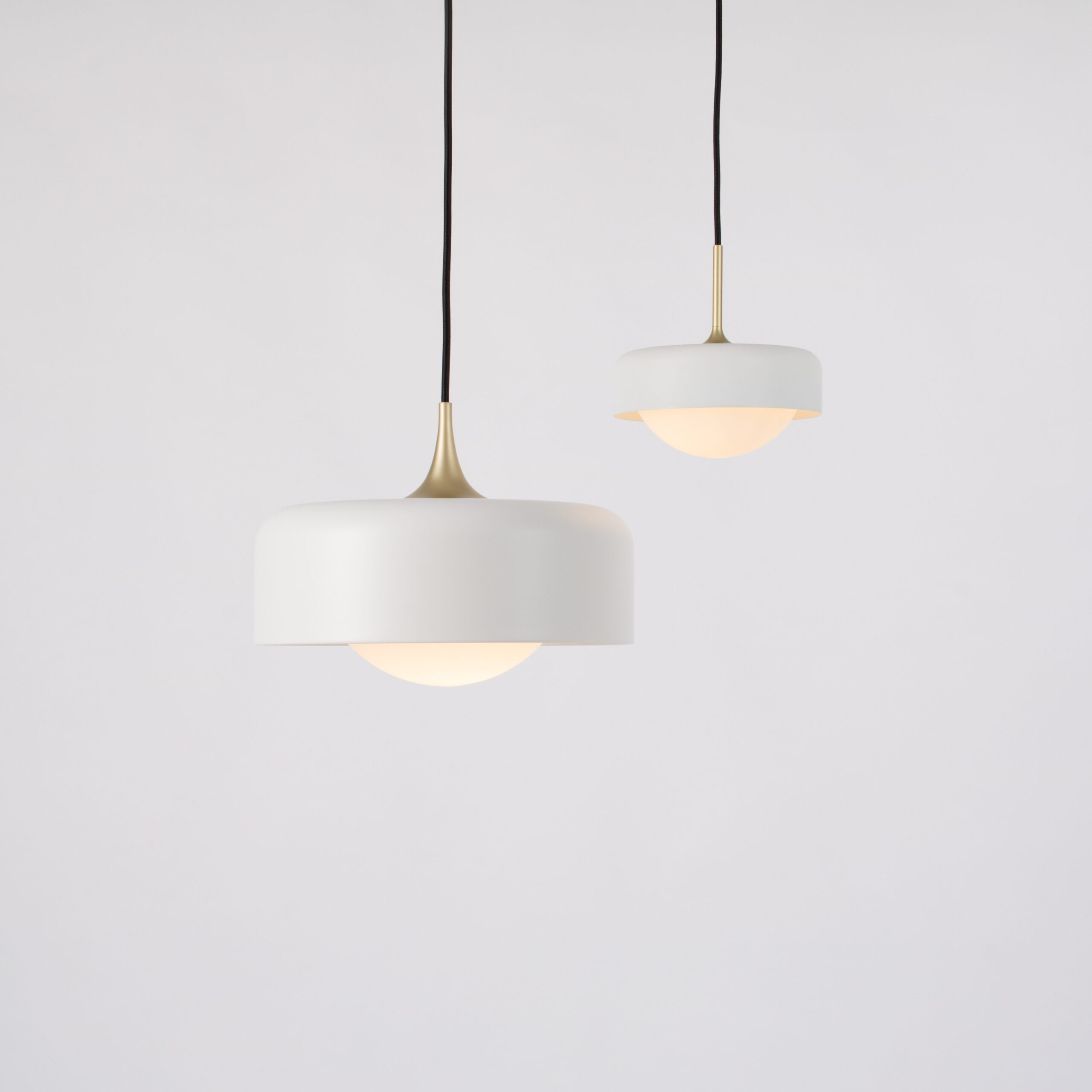 Pensée, a refined and contemporary take on a timeless silhouette. With its classic profile and compact design, the Pensee Pendant emits a calming glow through hand-crafted opal glass, now combined with a delicate metal shade available in four color options, topped off with a golden detail. Now available in a larger size for 2025, Pensee L Pendant extends its illumination to suit diverse spaces while preserving its signature serenity.