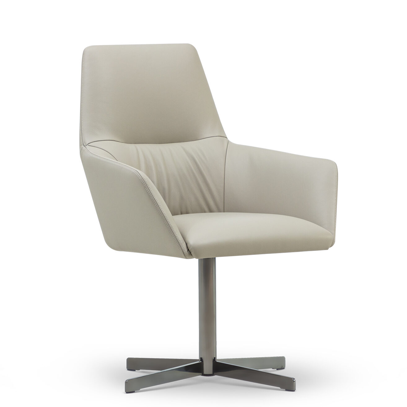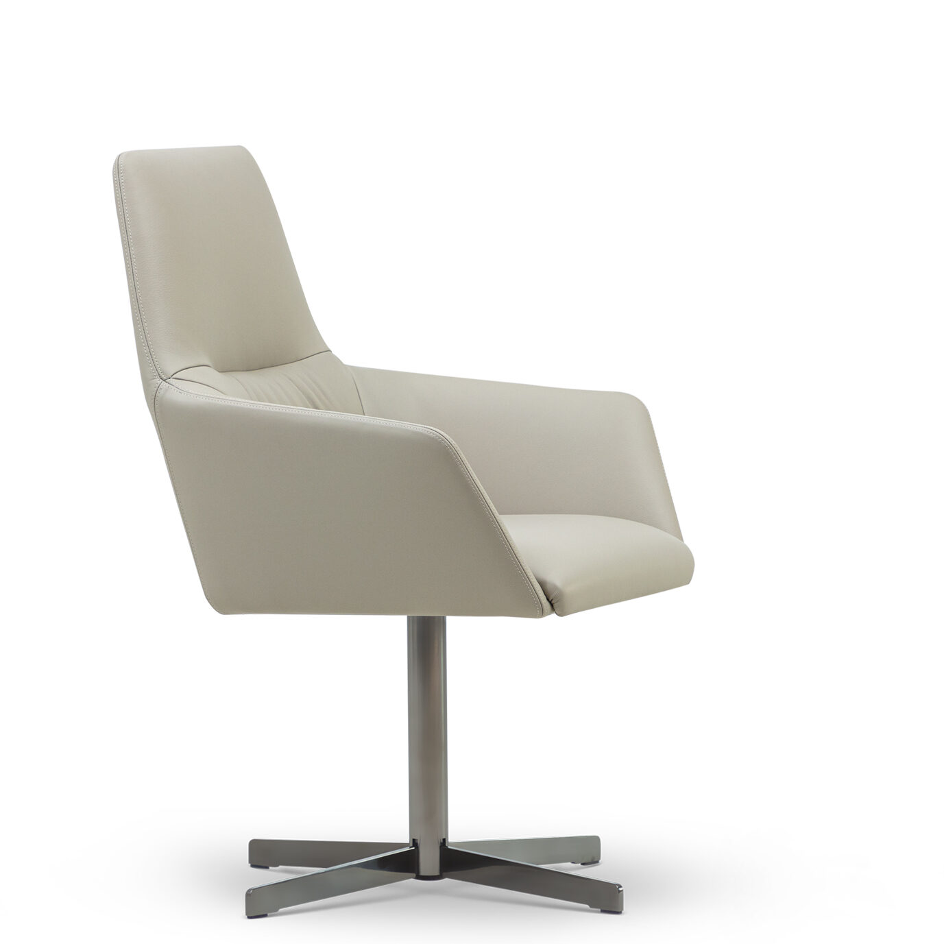 Qing Desk Chair is a modern twist on the classic, tailored desk chair. The Qing Desk Chair sits upright and neatly upholstered in your choice of fabrics or leathers. With a 360° swivel base, the Qing offers comfort in an elegant package. This chair is a must-have at the contemporary desk or conference setting.
