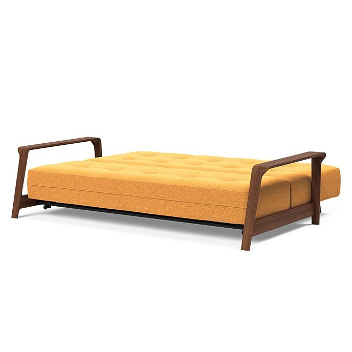 A Mid-Century-inspired design, the Ran D.E.L. Walnut Sleeper Sofa (Q) features bentwood walnut arms and a cozy Excess Pocket Spring mattress. Ran D.E.L. is an elegant everyday sofa which easily transforms into a bed. Ran D.E.L.’s standout feature are its solid wood legs and ease of functionality. With its clear focus on simple functionality, the Ran D.E.L. folds out into a restful EU Queen size bed. Sit, lounge, nap and rest comfortably in Ran D.E.L. by Innovation of Denmark.