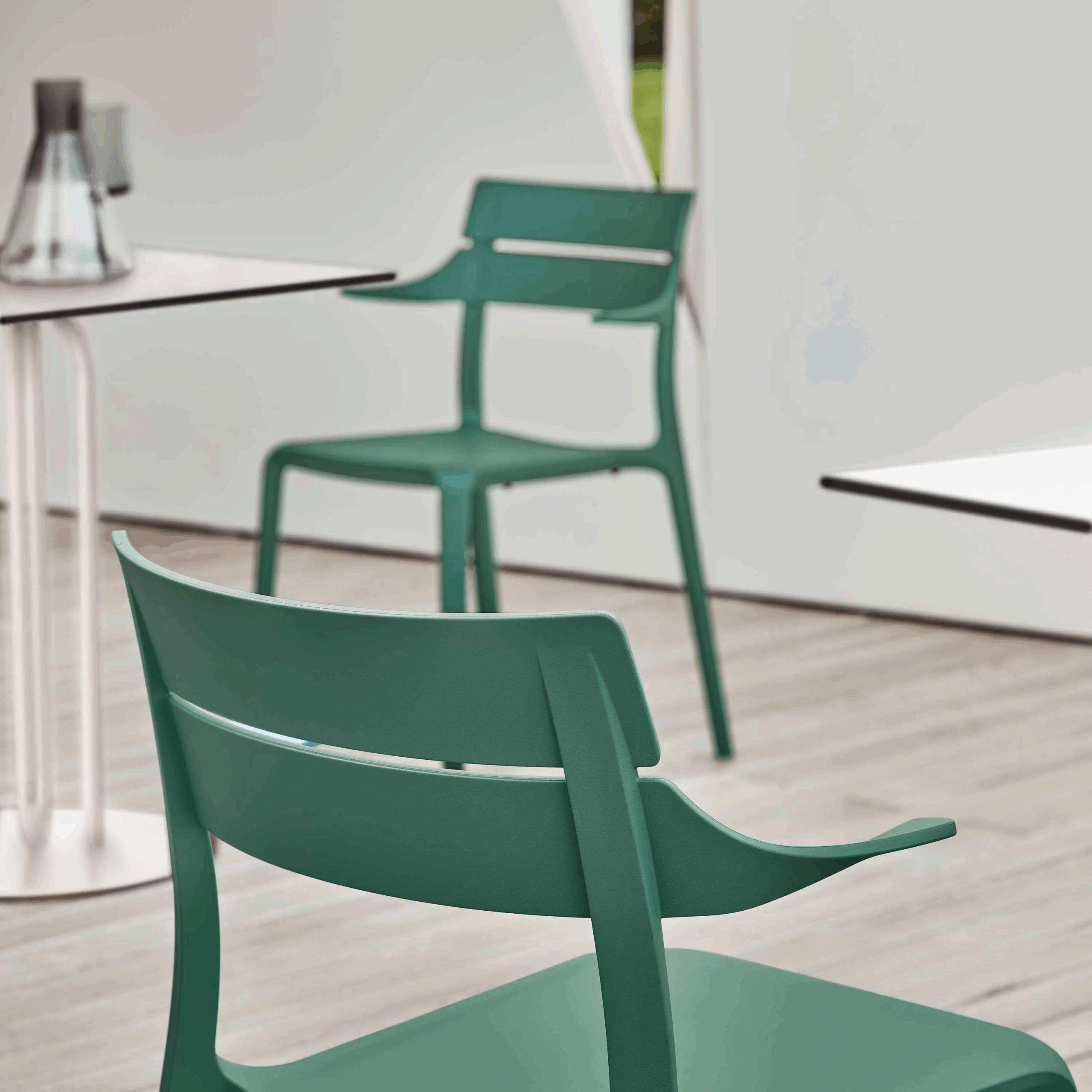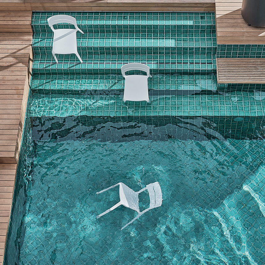 The Rocket chair combines visual appeal and practicality in a piece with a youthful, versatile spirit. Made from next-gen polypropylene, it is resistant to weathering and daily use, making Rocket a lightweight, durable and fully stackable chair. A wide color pallet highlights its playful, contemporary character, making it perfect for indoor and outdoor settings – from creative studios to kitchens, terraces to restaurants. The shaped armrests not only improve ergonomics, but also allow the chair to rest on a table or raised surface for ease of cleaning.