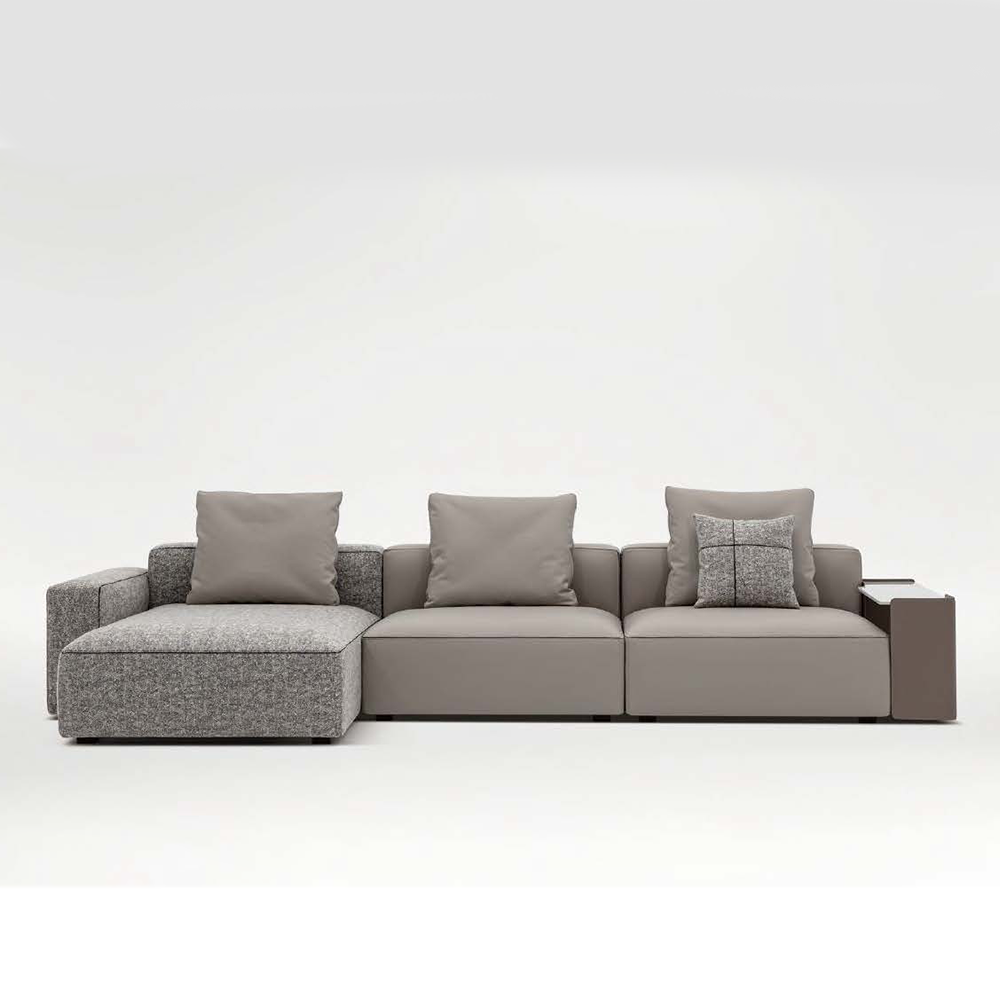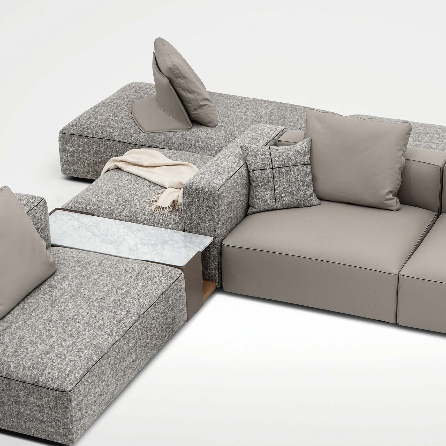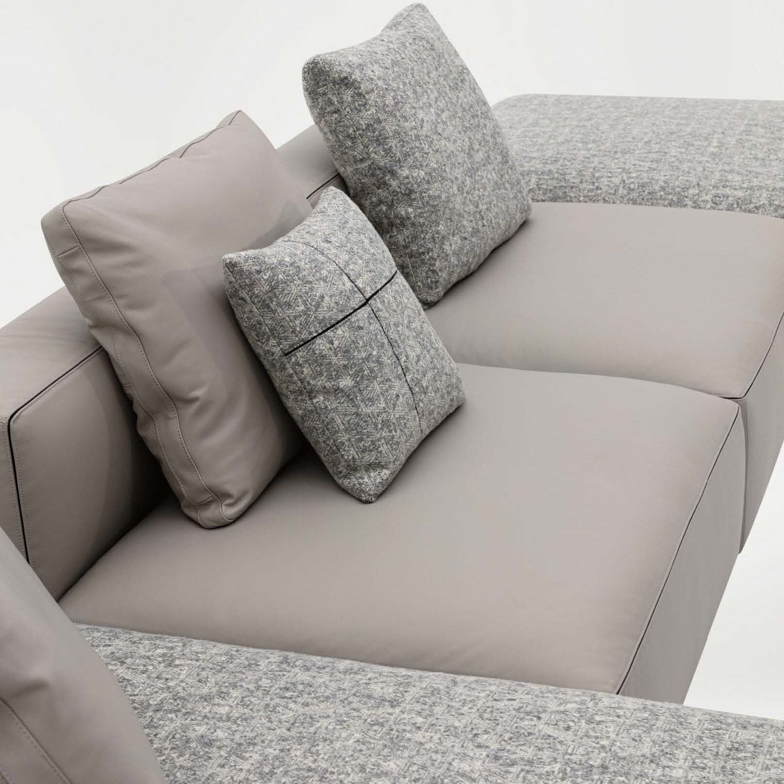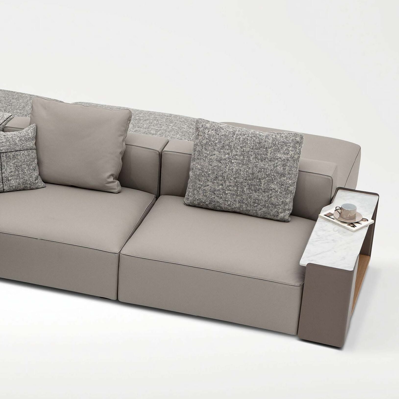 The epitome of modern chic, the Rubix Sectional by Camerich offers endless modular configurations. Subtle details like inlaid contrast piping highlight Rubix’ clean edges. Genuine marble armrests (paired with Eco-leather and wood shelving) elevate Rubix to contemporary luxury; upholstered armrests are also available. Tightly tailored seats are topped with down channeling making this a sleek as well as comfortable sofa/sectional. Standalone cushions and optional neck rolls elevate the comfort of the overall design. Choose from various fabric or leather upholstery options to complete Rubix.