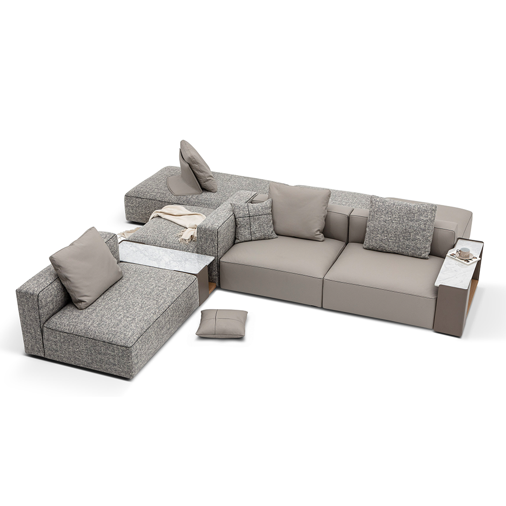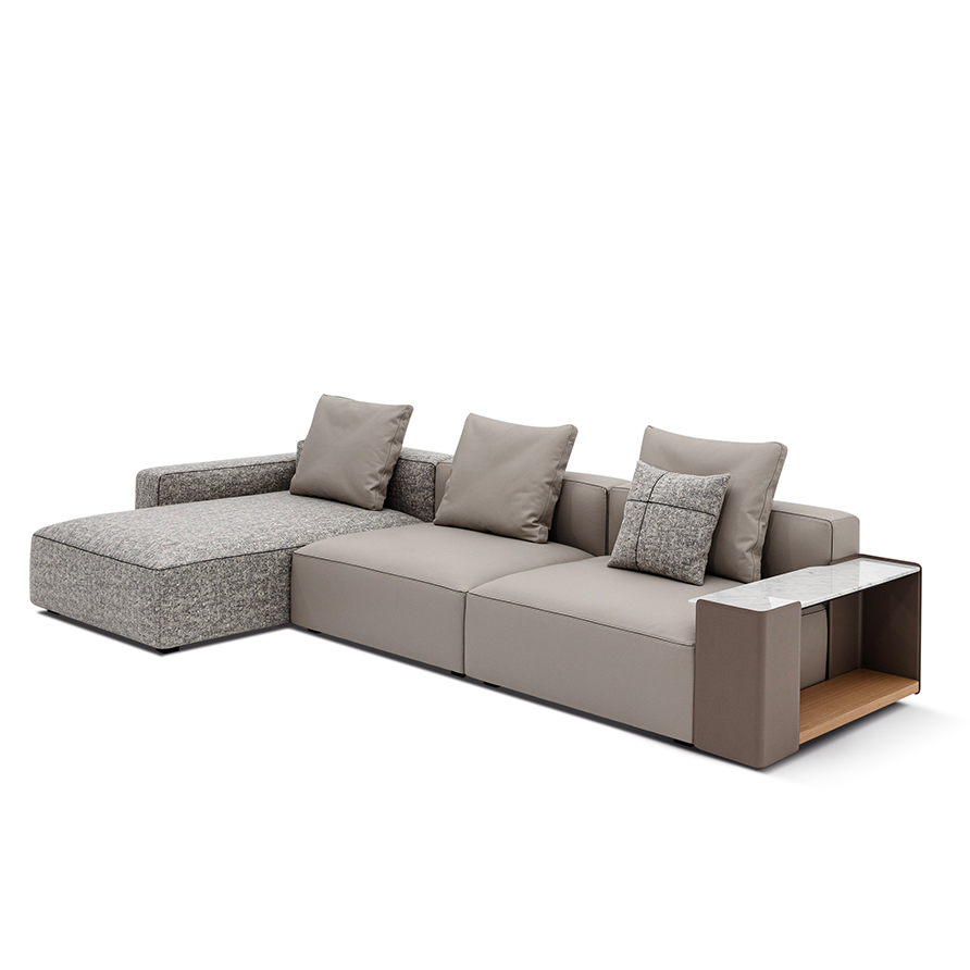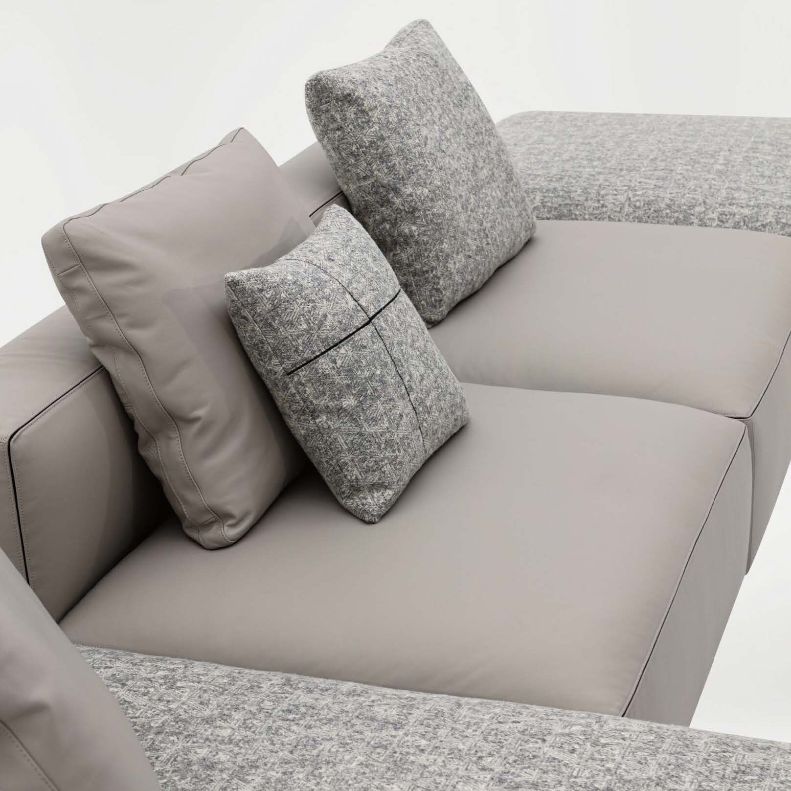 The epitome of modern chic, the Rubix Sectional by Camerich offers endless modular configurations. Subtle details like inlaid contrast piping highlight Rubix’ clean edges. Genuine marble armrests (paired with Eco-leather and wood shelving) elevate Rubix to contemporary luxury; upholstered armrests are also available. Tightly tailored seats are topped with down channeling making this a sleek as well as comfortable sofa/sectional. Standalone cushions and optional neck rolls elevate the comfort of the overall design. Choose from various fabric or leather upholstery options to complete Rubix.