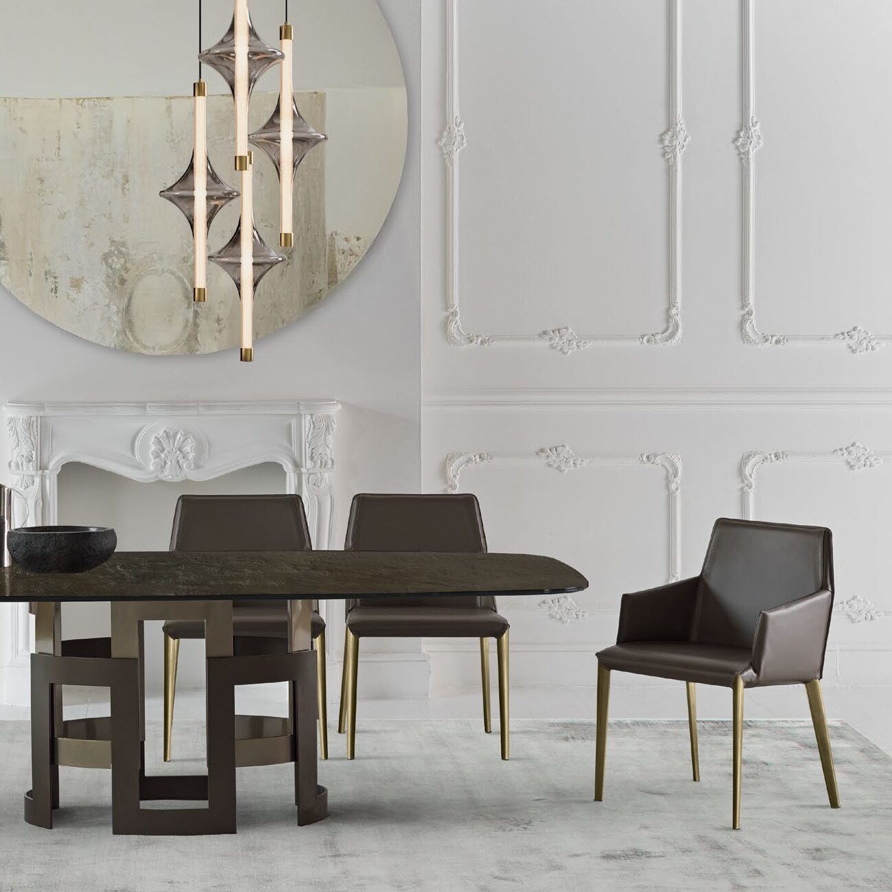 The Sally chair is an icon of geometric precision and softness, featuring a squared, assertive profile. Its structure offers a striking contrast between visual integrity and tactile sensuality, thanks to the generous padding. The supple hide-leather upholstery, with either tone-on-tone or contrast stitching, showcases refined craftsmanship. Available with or without arms, Sally adapts effortlessly to a range of settings, from sophisticated lounges to hospitality spaces. Its metal base enhances contemporary elegance, giving the chair a well-balanced and stylistically powerful presence.