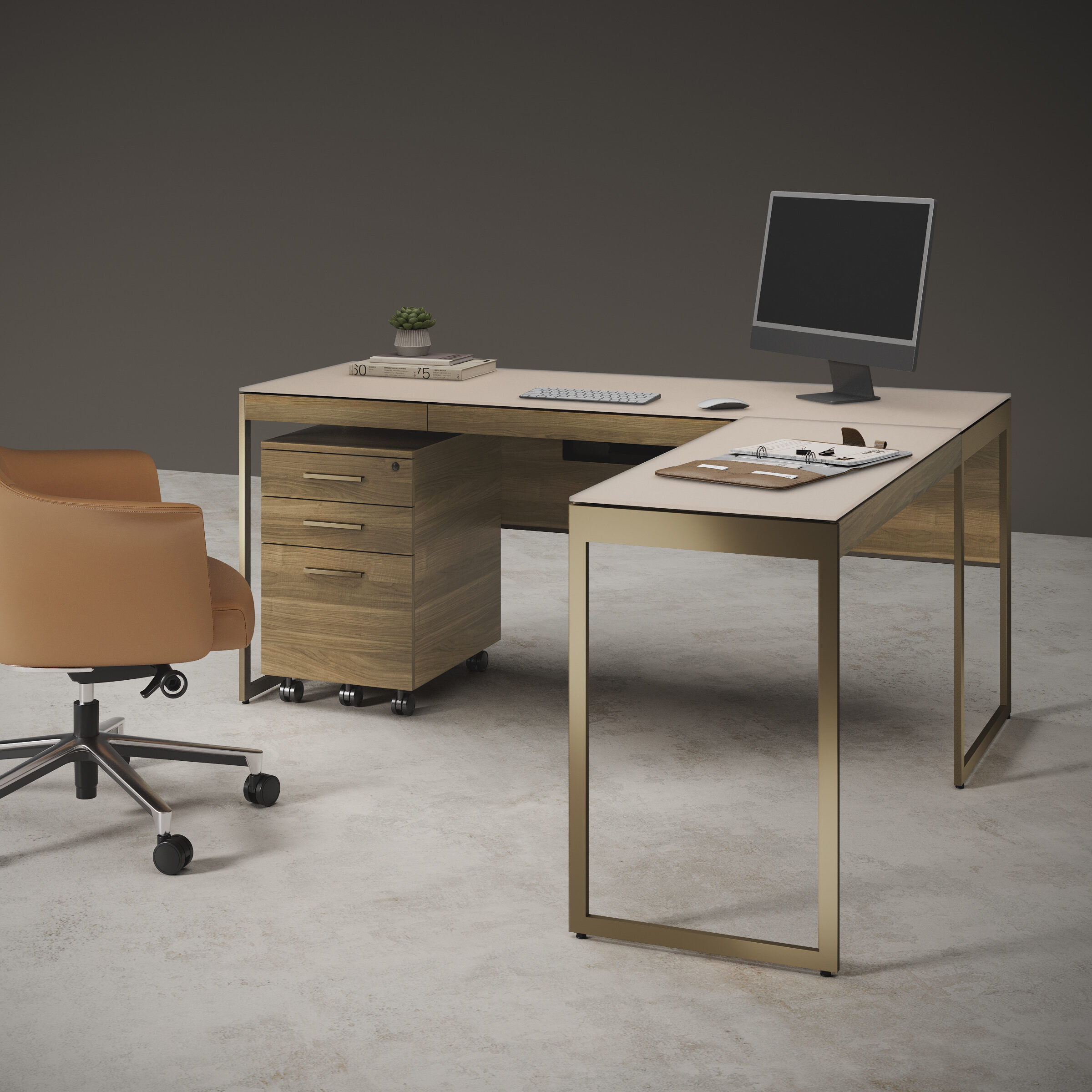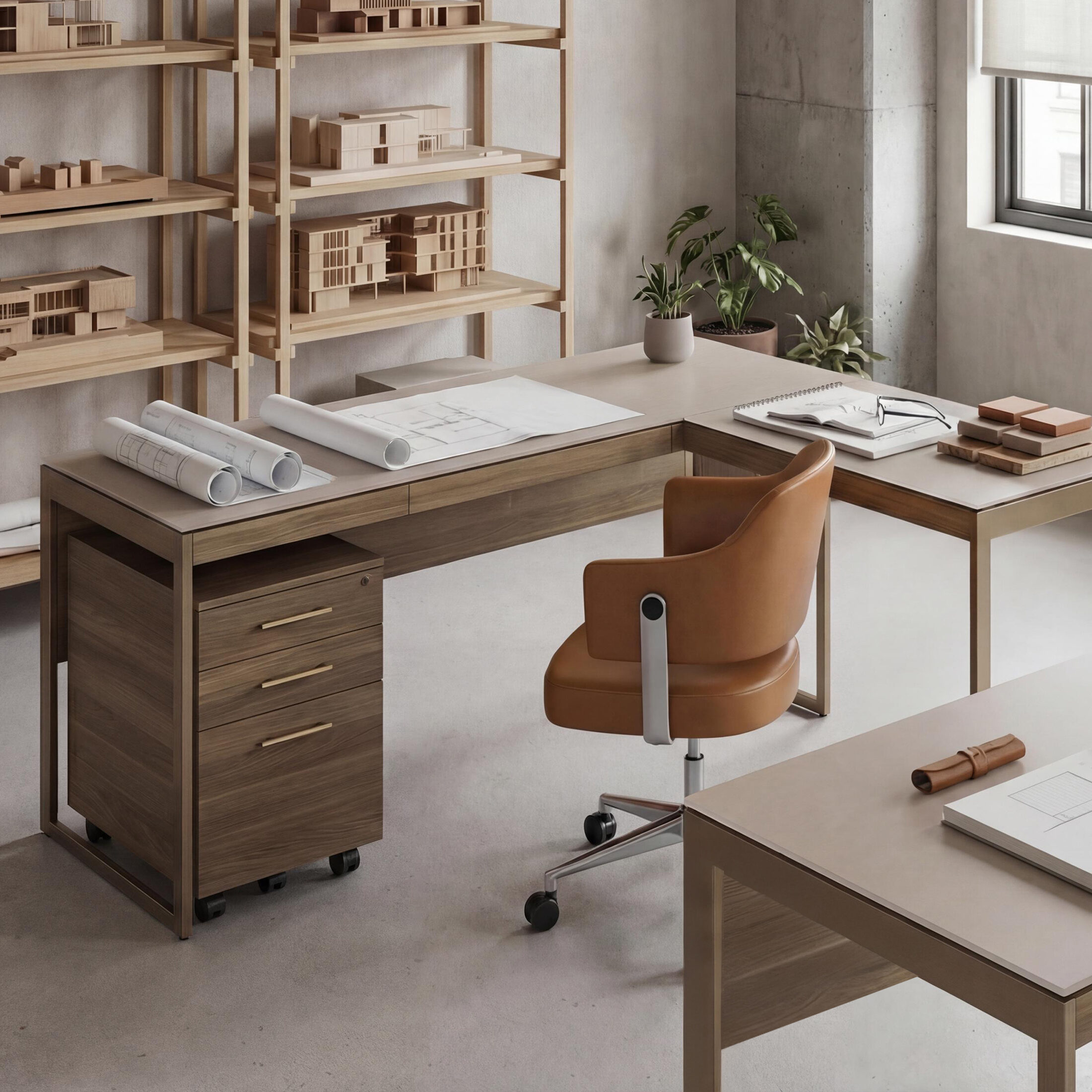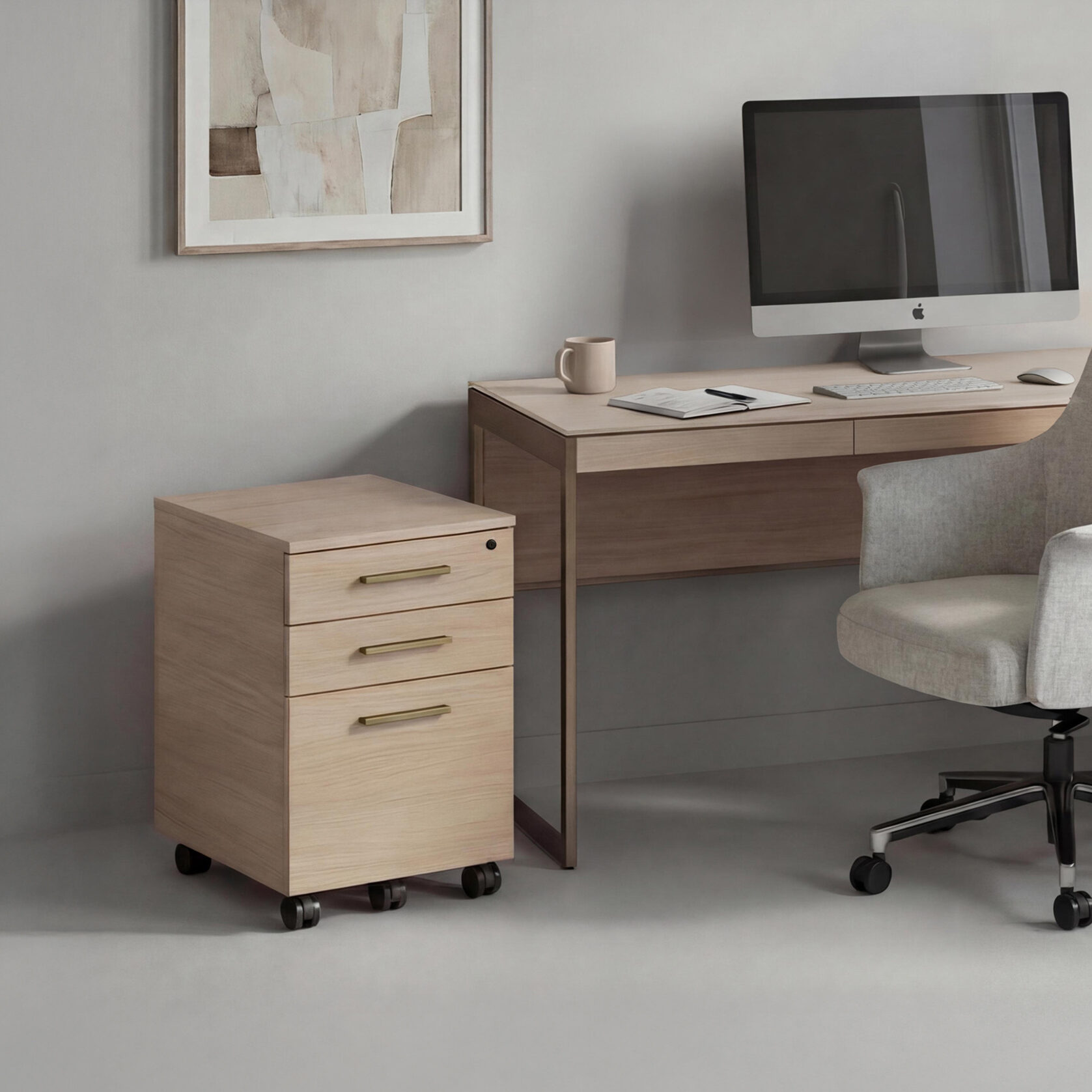 Sequel Studio features a streamlined desk collection with adaptable storage. The compact Sequel Studio Mobile File cabinet moves with the work, designed to stay close at hand.