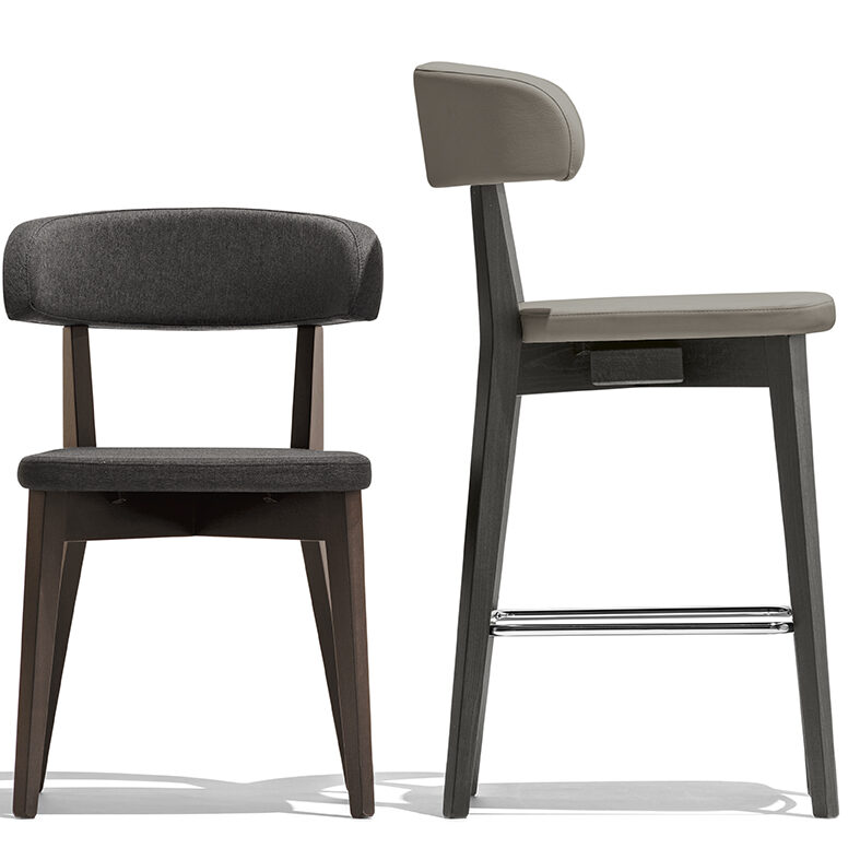 Siren Counter Stool by Connubia is a Nordic-inspired wooden stool featuring a metal footrest and large, comfortable seat. Siren’s wraparound backrest and wide seat are both upholstered in your choice of finish.
