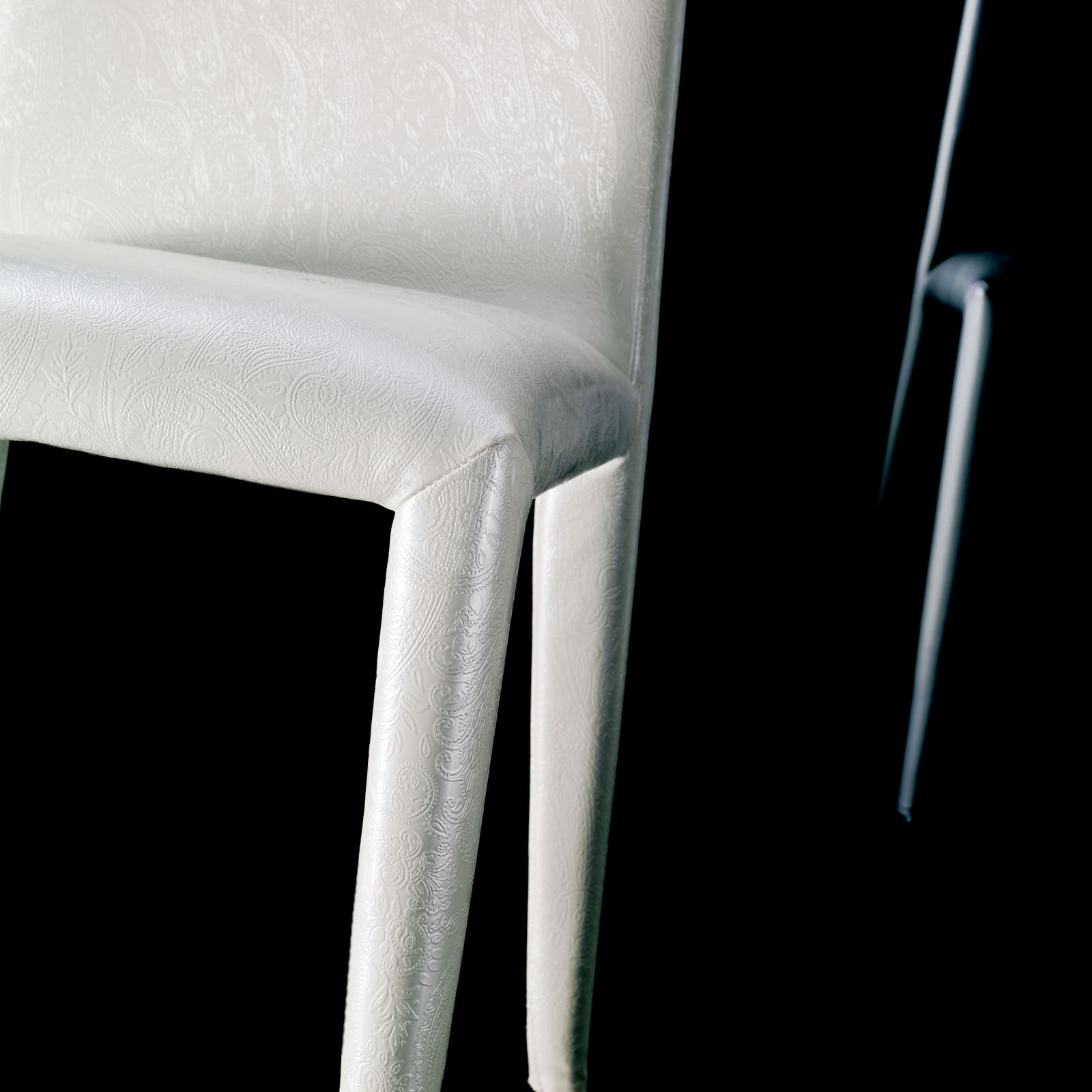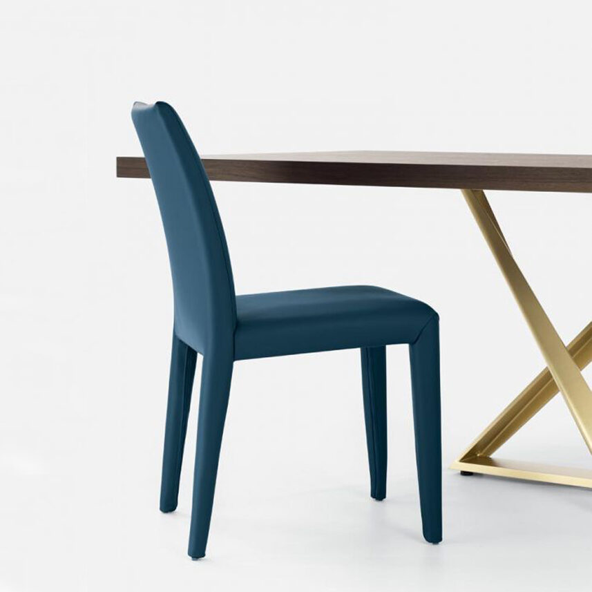 Sofia is a chair with a modern character, where materials and proportions come together in a perfect balance of visual appeal and functionality. Its fluid design is distinguished by a fully upholstered frame, with a thick padded seat and equally as plush wrapped legs. Its versatility makes it suitable for dining areas, meeting rooms and hospitality environments, with an understated yet distinctive presence. The Sofia FLEX version introduces a refined innovation: a backrest that flexes, subtly, in response to movement providing an extra layer of comfort to an already inviting design.