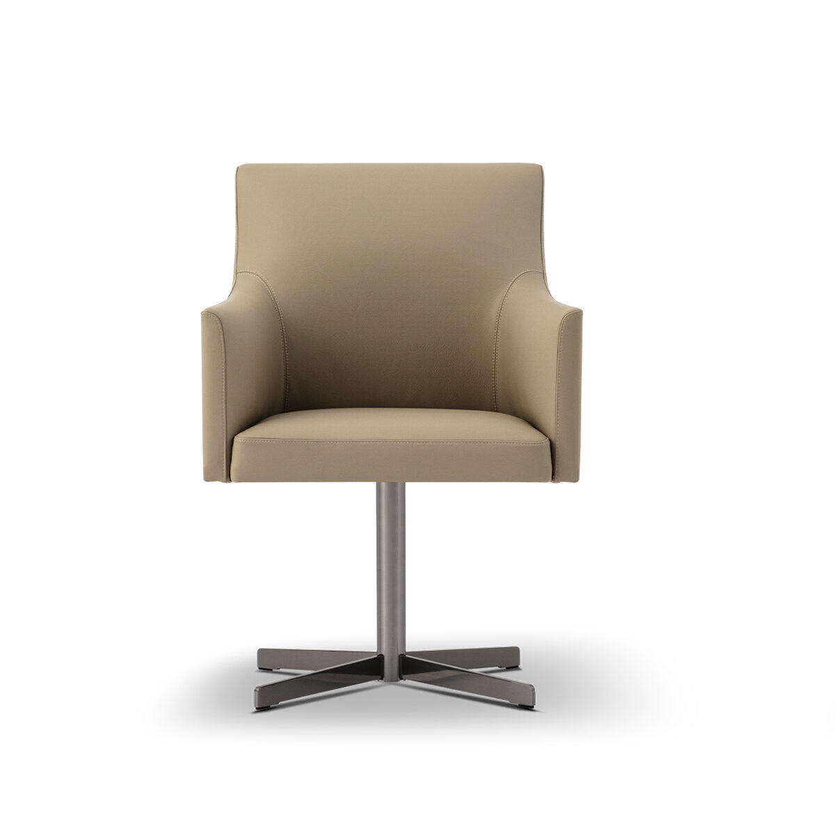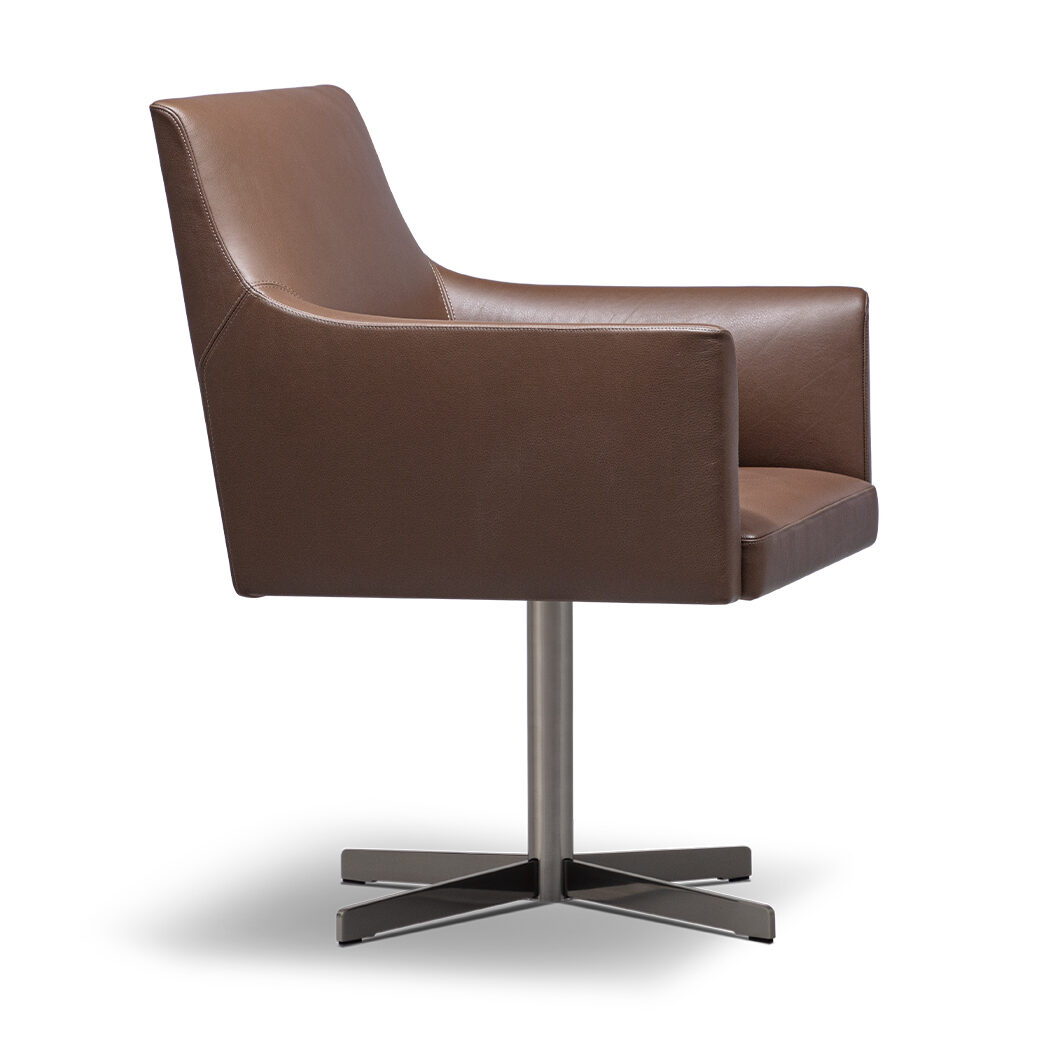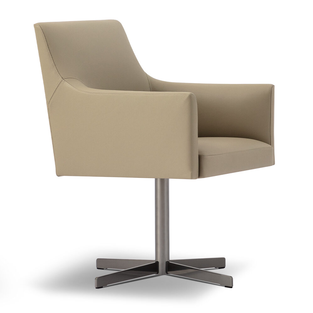 Upright and comfortable, the Soho Desk Chair combines classical lines in a modern expression. Soho’s curves pair with a dark metal swivel base, delivering a swanky allure. Soho Desk Chair is right at home in the contemporary office and is available in your choice of fabric or leather upholstery.