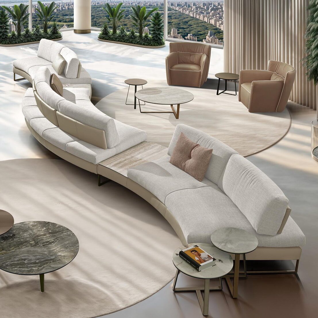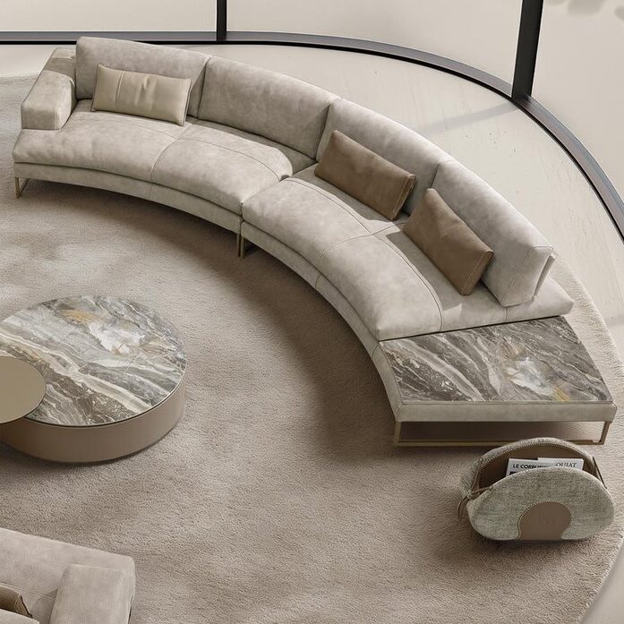With its chic curved silhouette and brand-new sectional modules, Sunset Round is a modern sofa that will lend itself perfectly to the contemporary meeting space. Its cocooning structure is meant to break down barriers and bring people together while facilitating socialization, relaxation and sharing. At the same time, it is a strikingly handsome piece of modern Italian furniture, wielding a strong aesthetic impact. Sunset Round is the ideal sofa for anyone who is seeking something visually dramatic, yet functional and flexible at the same time. Sunset’s adjustable backrests make for an extremely comfortable sit in a sophisticated style.